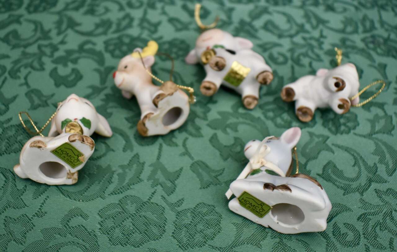 We will sell this cute set of Vintage ‘Homco By Home Interiors” Christmas Ornaments at A Really Great Price of Only $5.00 FOR ALL 5 as a Set!! — CASH & LOCAL PICK UP ONLY PLEASE- THANK YOU!*