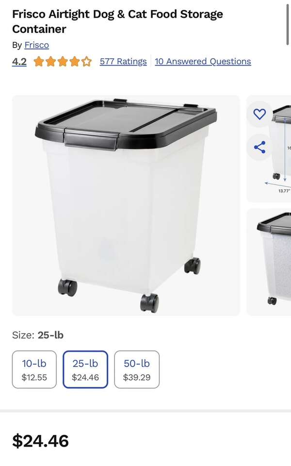 Frisco Airtight Dog & Cat Food Storage Container 25 lb