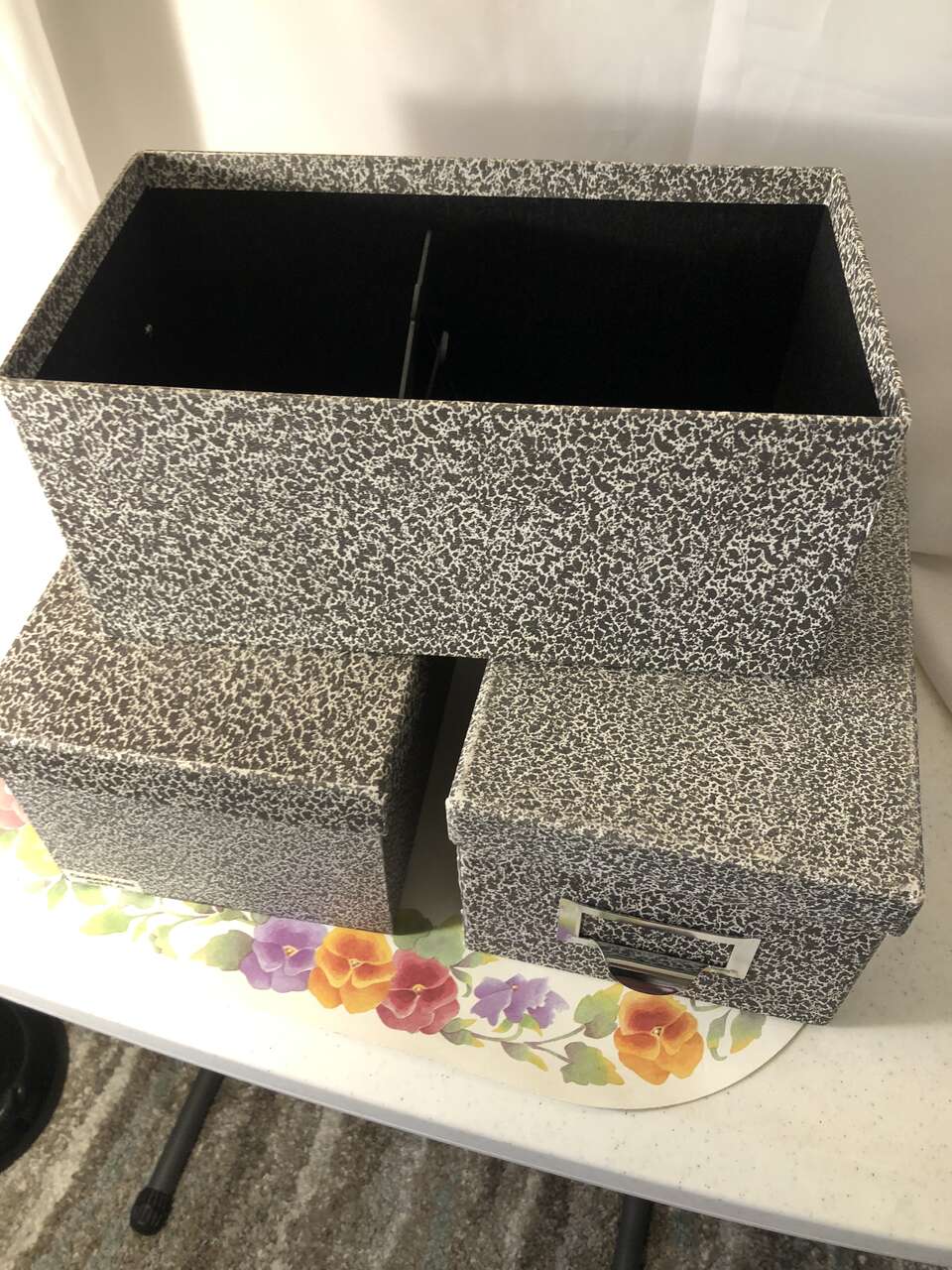 VenmoKeep your paperwork tidy and organized with this set of three Pendaflex filing boxes. Each box features a modern gray and white pattern and is perfect for storing important documents, receipts, or home office supplies.