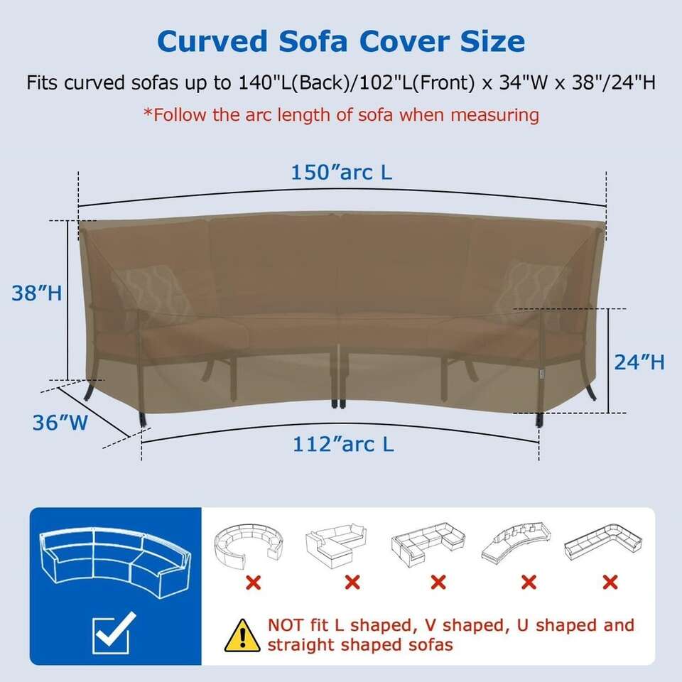 Heavy Duty Waterproof Patio Sofa Cover All Weather Protection Patio Furniture Cover Air Vent & Straps 150(back)/112(front)L x 36W x 38/24H Taupe 150(Back)/112(Front)L x 36W x 38H