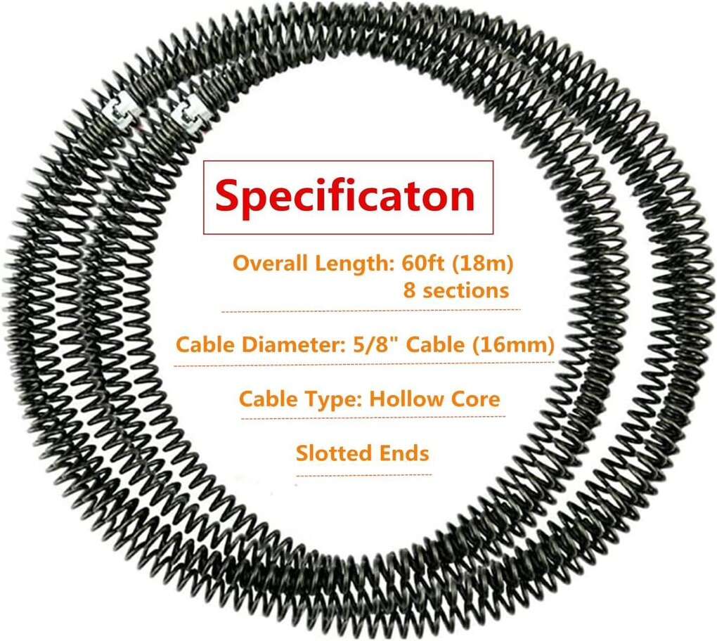 Willbebest Drain Cleaning Cable 60 Feet x 5/8 Inch Hollow Core Cable Sewer Cable Drain Auger Cable Cleaner Snake Clog Pipe Drain Cleaning Cable Sewer Drain Auger Snake Pipe