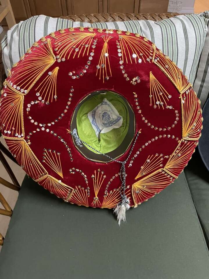 Sold the red one in the picture… Black one is available. It is about a 7 1/2 to 7 3/4 size (teen or adult size). $25 for it. It is authentic Mexican made. Cash only.