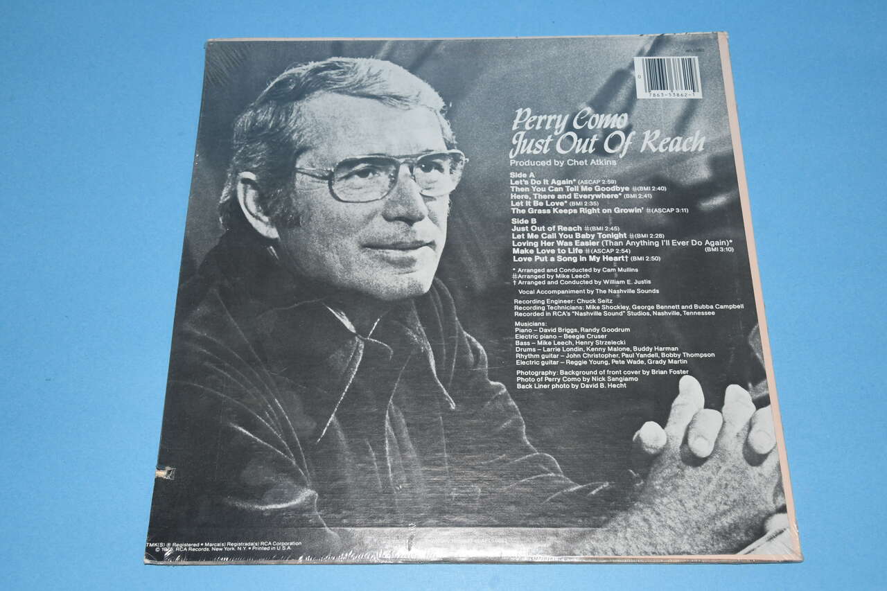 This Vintage 1975 PERRY COMO "JUST OUT OF REACH" Vinyl Record is SEALED. There is a small notch in the side. Our home is smoke free. Questions??? Please ask. We are located in Plain City. Cash only please.