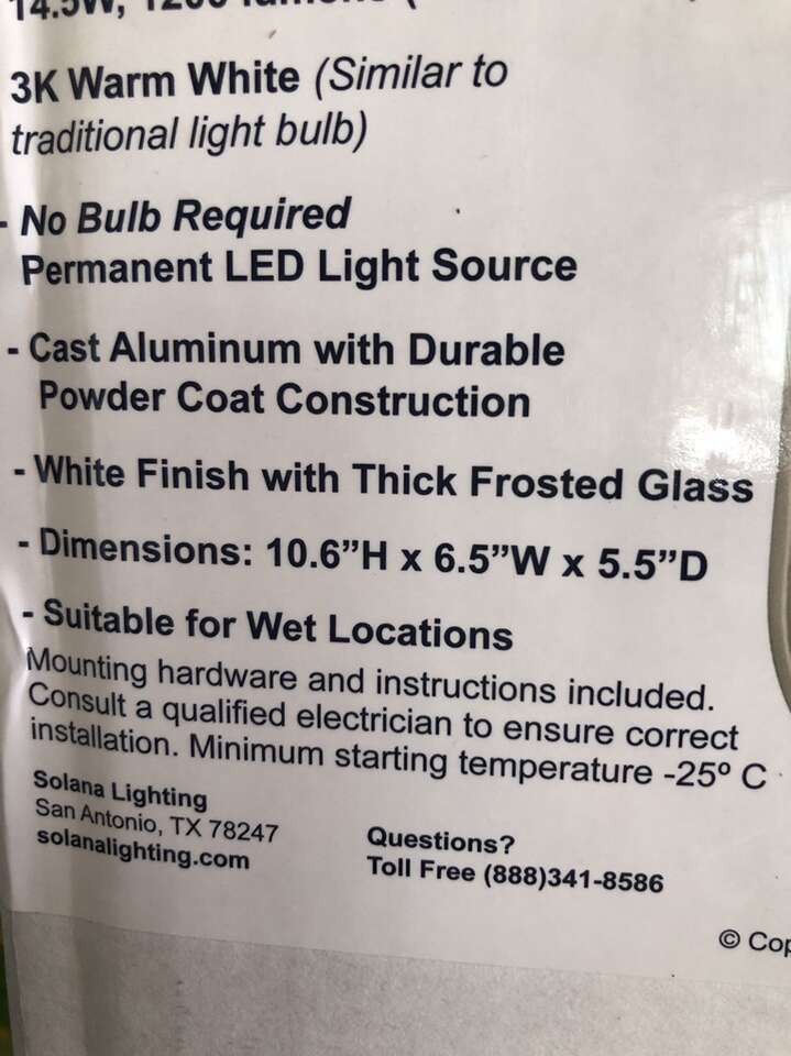 No bulb Required Permanent LED Light Source 10.6” H x 6.5” W x 5.5”D
