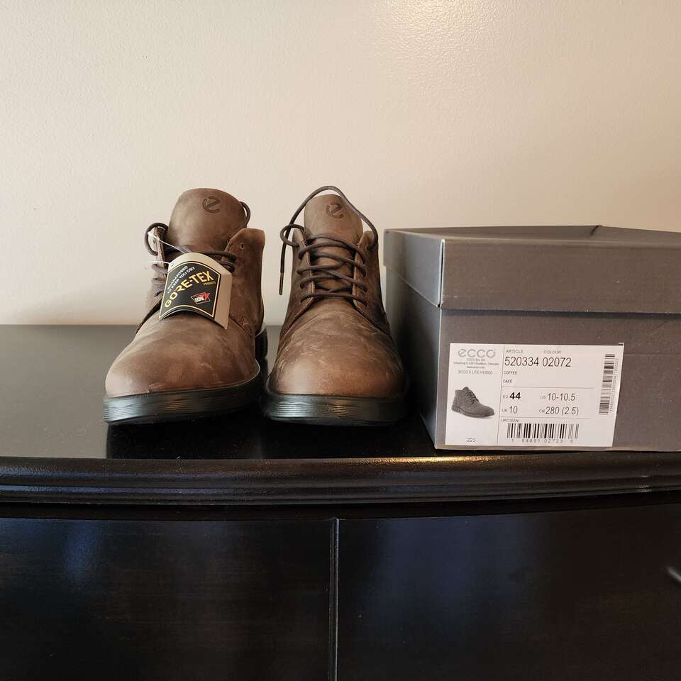 ECCO COFFEE COLOR SUEDE LITE HYBRID NEW IN BOX. SIZE 10-101/2. RETAILS FOR $160.00