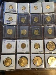 100 1/10 oz Gold Eagles, ms66+ ms69 quality.... live have 1 fresh roll 1999 available AND partial roll 87 pieces 1999 live subject to prior sales.. Asking +29.55 or about +5.95555% 50+ +31.23 20+ @ +32.55 e @ 10+ @ +34.56 live, singles @+37.77