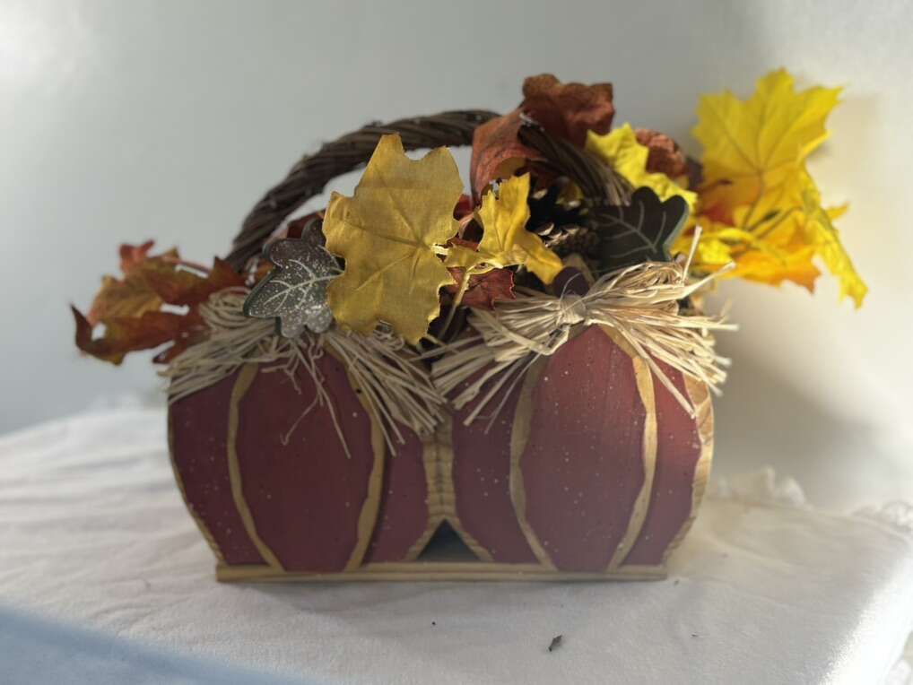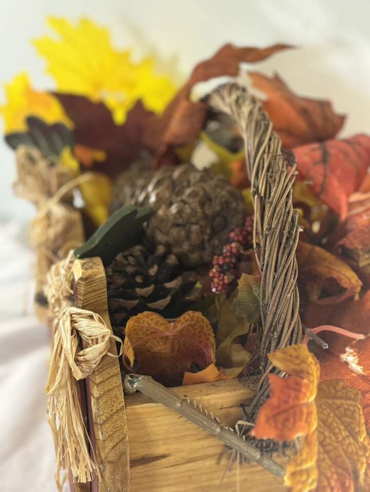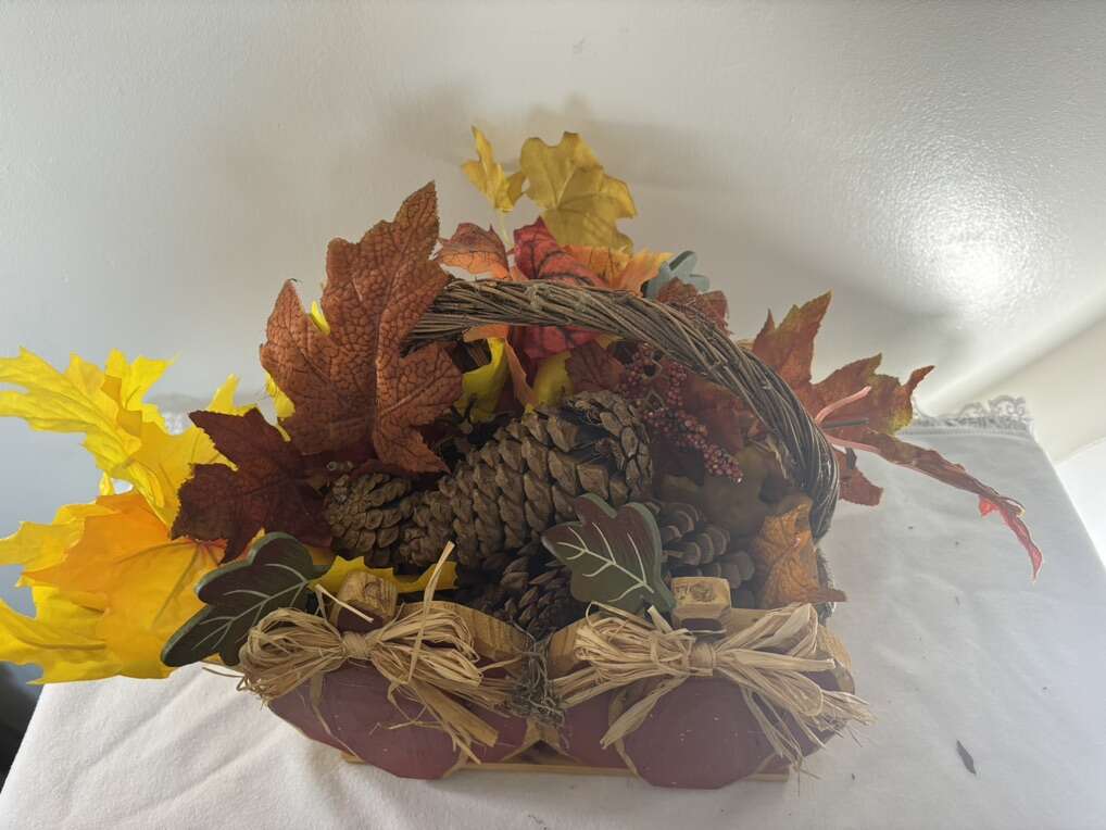 VenmoFestive Seasonal Fall Basket w/ Silk Flowers Pine Cones Decor 9.25”H x 10.5”L x 7”W