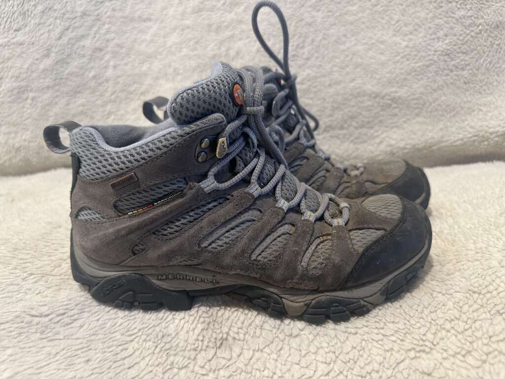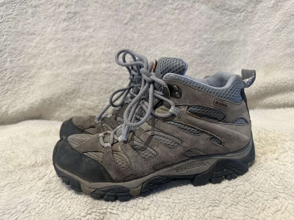 Merrell women’s size 7.5 gray mesh and leather with blue trim waterproof hiking boots. These are in good condition, see photos for details. I take cash or Venmo, but cash is preferred. Text is best. 801-201-4446. Check out my other ads for additional sizes and styles.