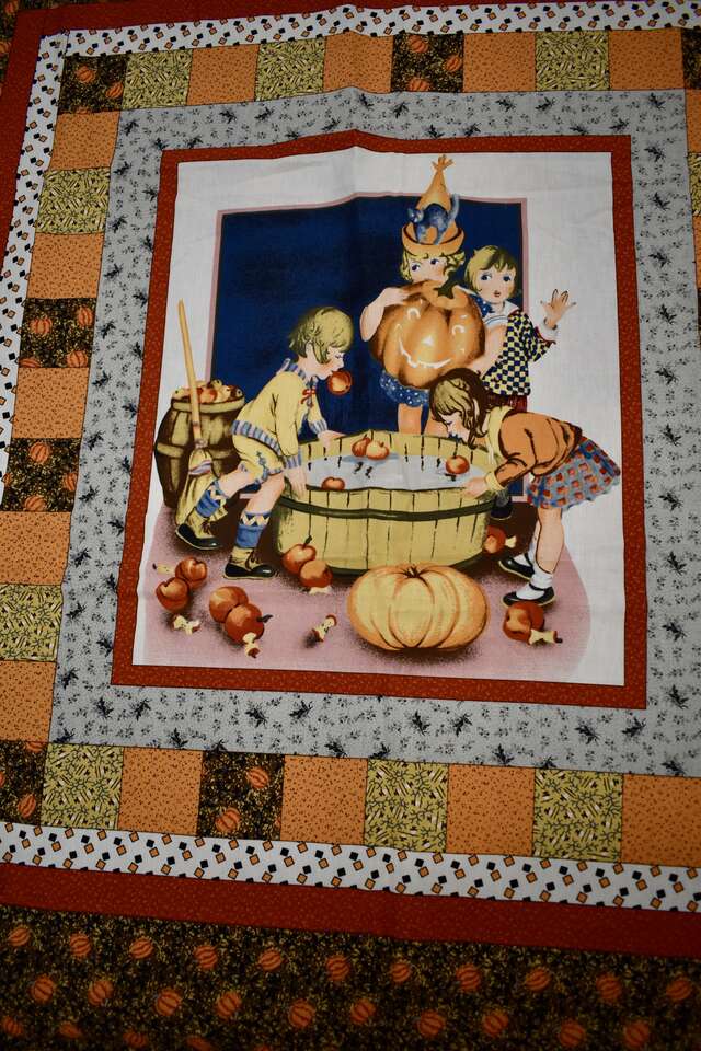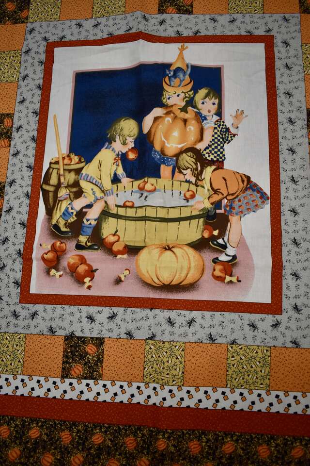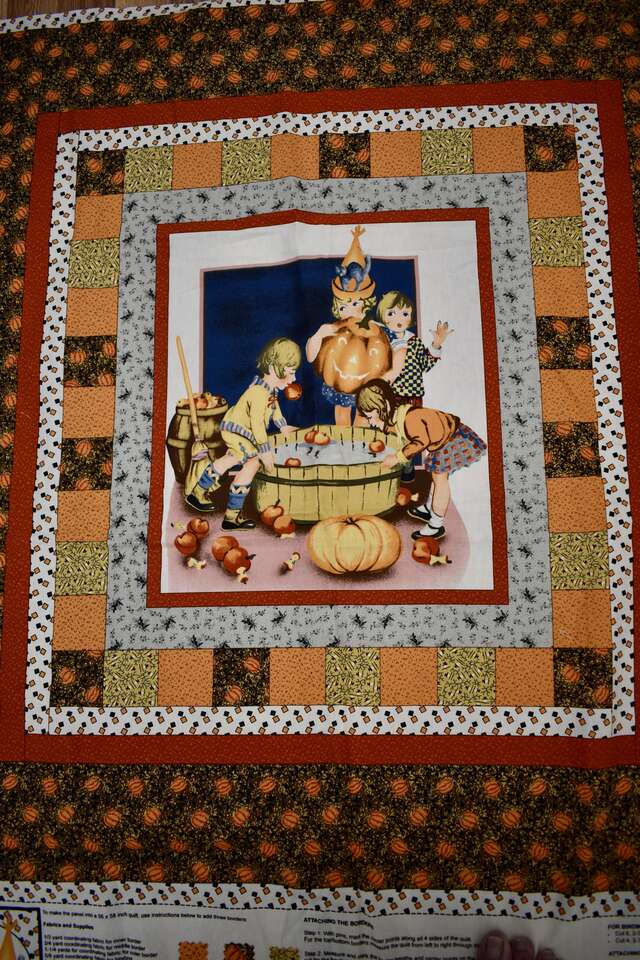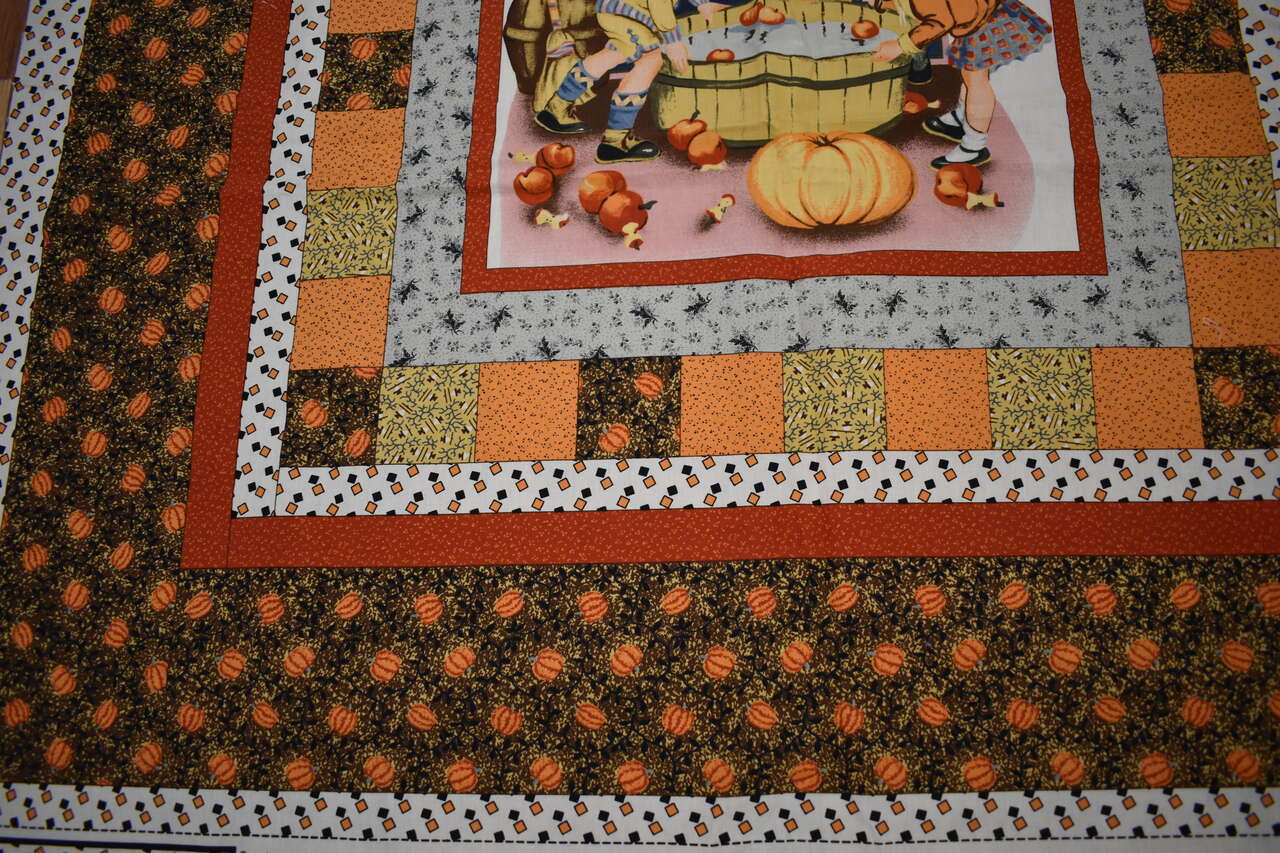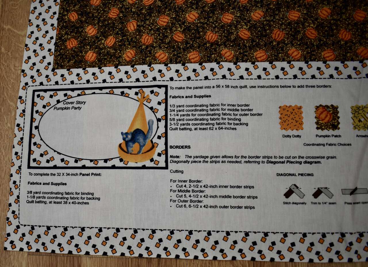 IT MEASURES… The Cotton Fabric Panel Measures… 36 inches wide X 44 Inches long and the useable area of the Panel Measures approx. 36 X 36 without the instructions area.