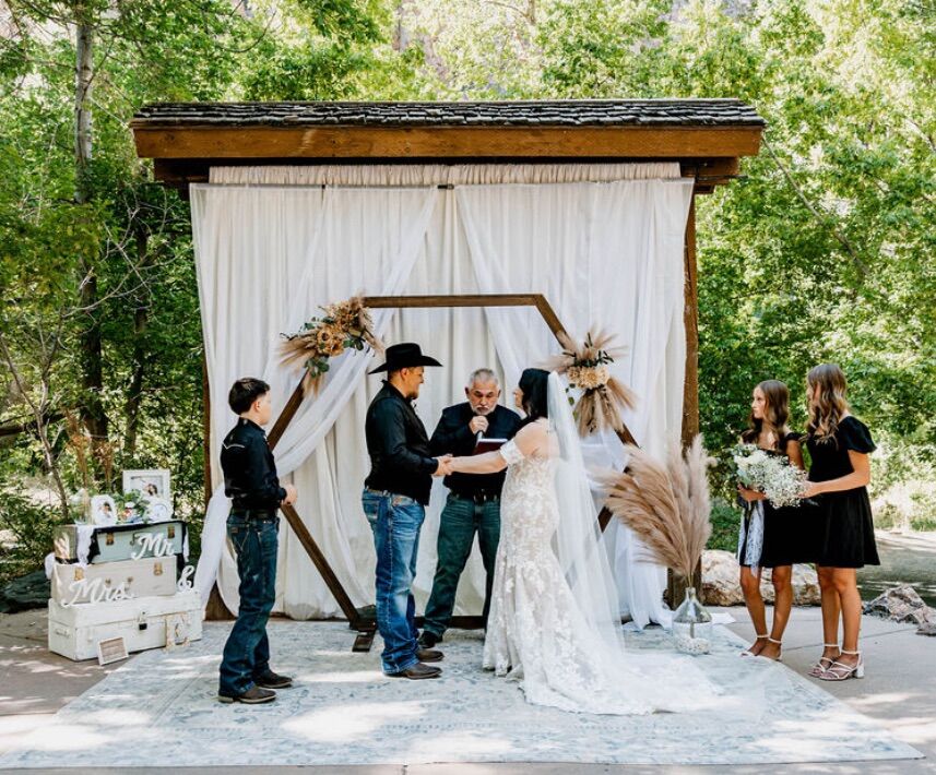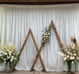Do you need to cover a large area? Why make it when you can rent it? We made this for our daughter’s wedding at Storm Mountain Amphitheater in Big Cottonwood Canyon. It is approximately 23 ft wide and 12 ft tall. ( These pictures are covering a 12 x 12 bulletin board @ Storm Mountain Amphitheater) This is for the curtain only- other decor is NOT available. It has a pocket at the top for a rod. (12 ft metal rod is an additional $10 if needed).