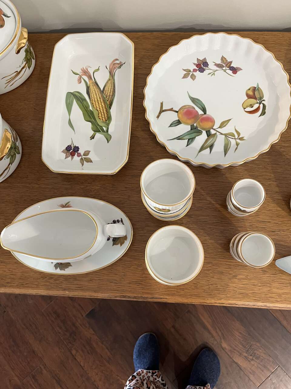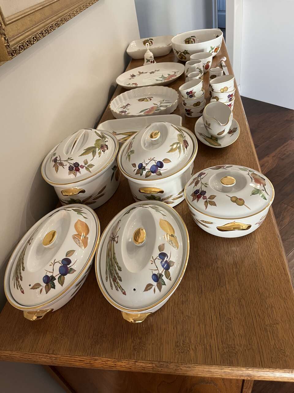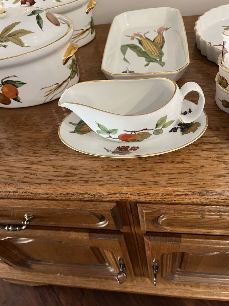 ROYAL WORCESTER - EVESHAM Design - Gold Design - numerous dishes/dinnerware. I am selling serving dishes, platters, gravy pot, knives and lots more. Please look through ALL my pictures. These are oven to table wear. You can cook the food in the oven and serve it at the table.