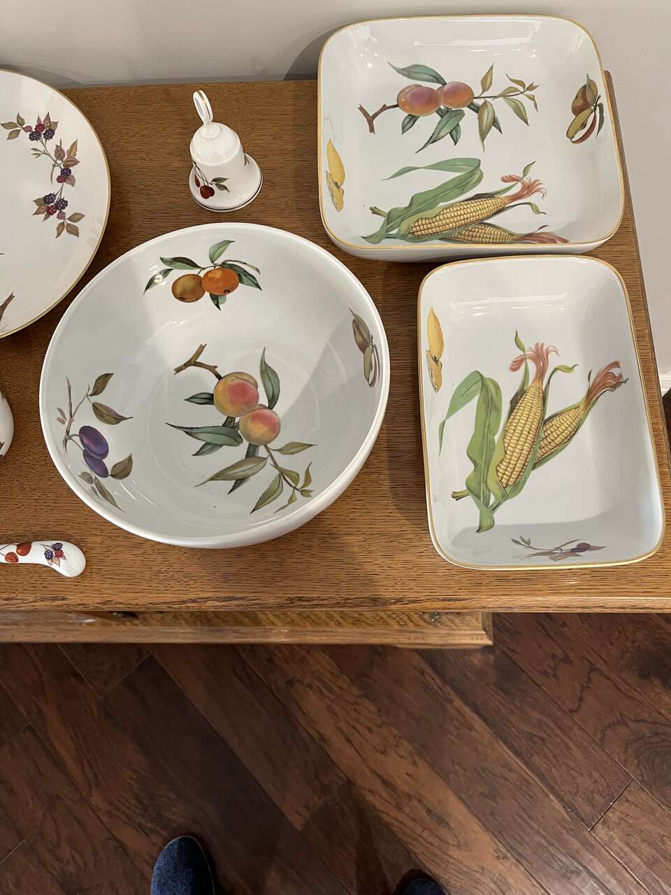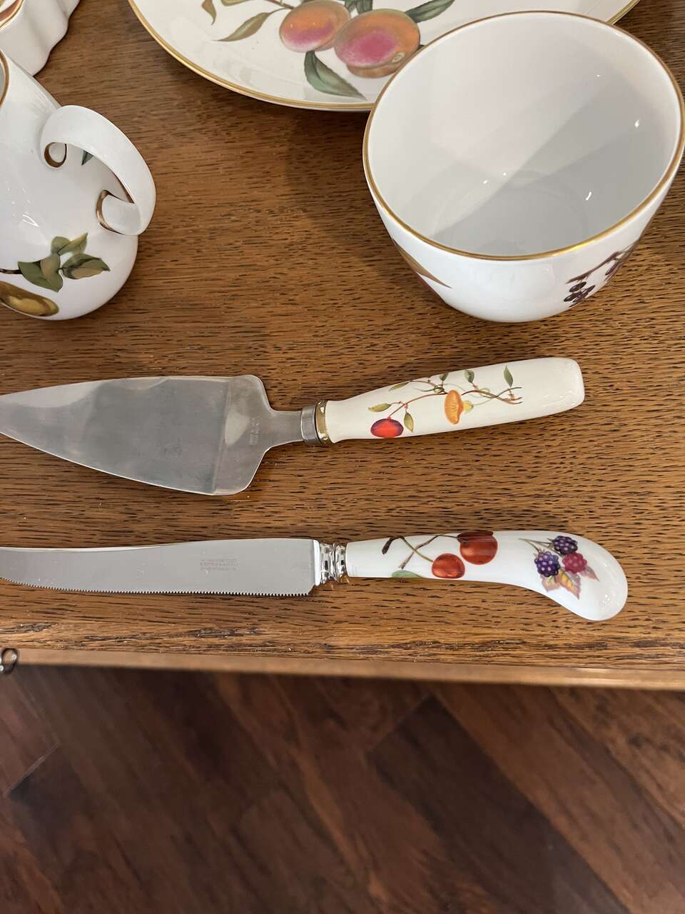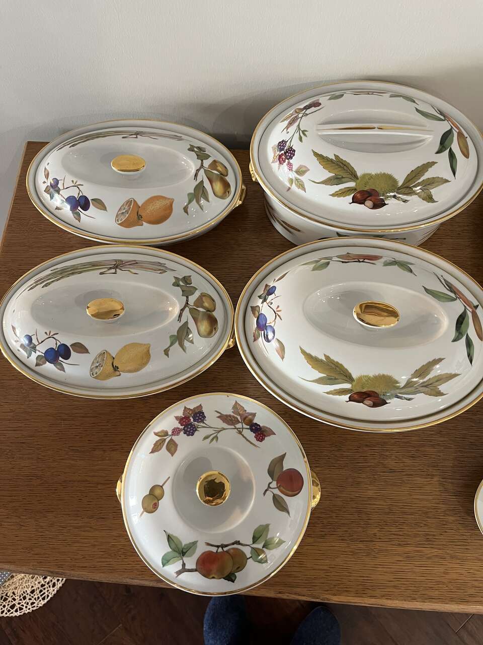 ROYAL WORCESTER - EVESHAM Design - Gold Design - numerous dishes/dinnerware. I am selling serving dishes, platters, gravy pot, knives and lots more. Please look through ALL my pictures. These are oven to table wear. You can cook the food in the oven and serve it at the table.