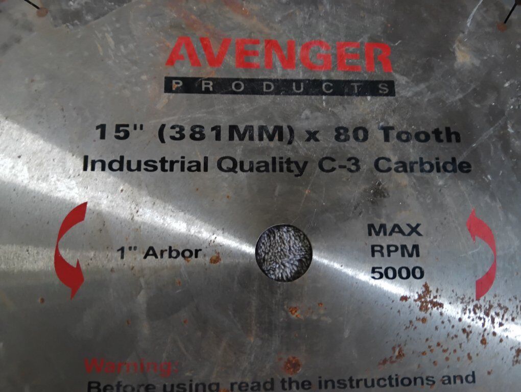 Brand new never used Adventure one 15 inch carbide 80 tooth & one 110 tooth saw blades 1" harbor hole $20 each
