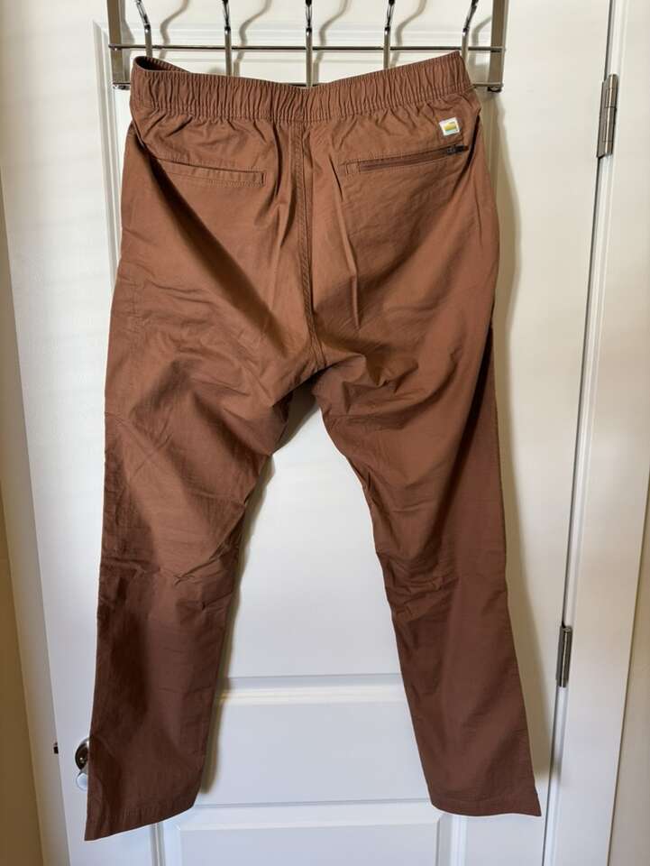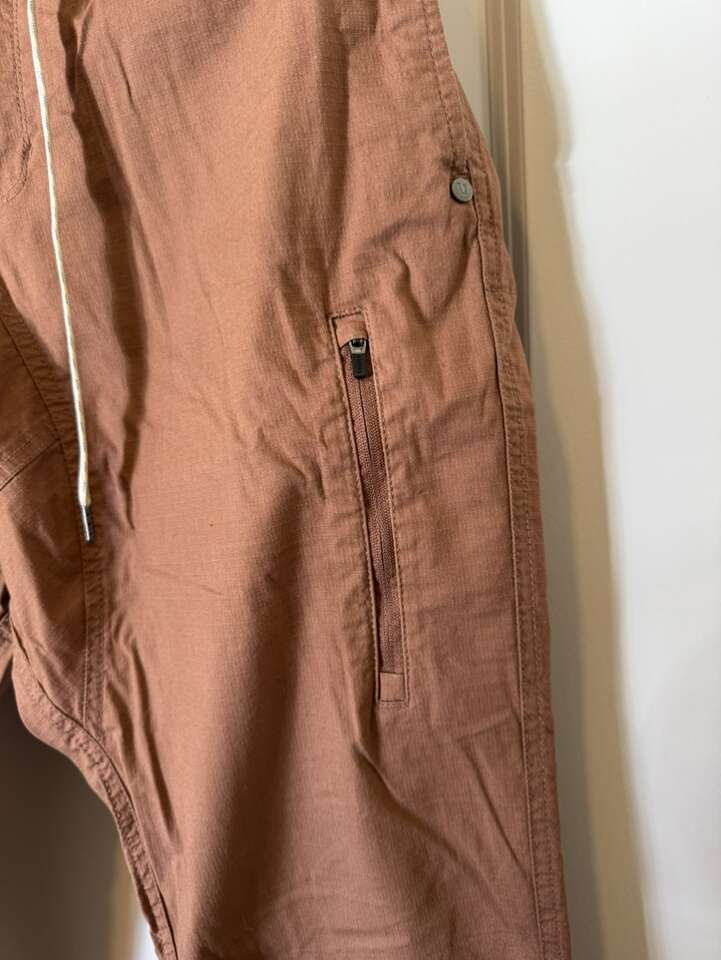 For sale is a like new pair of salmon colored Vuori Ripstop Joggers in men’s medium. They have two hand pockets, a zippered thigh pocket that fits a phone, two seat pockets with one being zippered. The waist features elastic, a draw cord, and a button. These pants are in excellent shape with no rips, tears, holes, or stains. I’m only selling them because I don’t wear them.