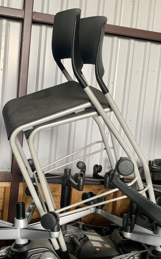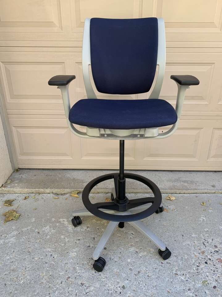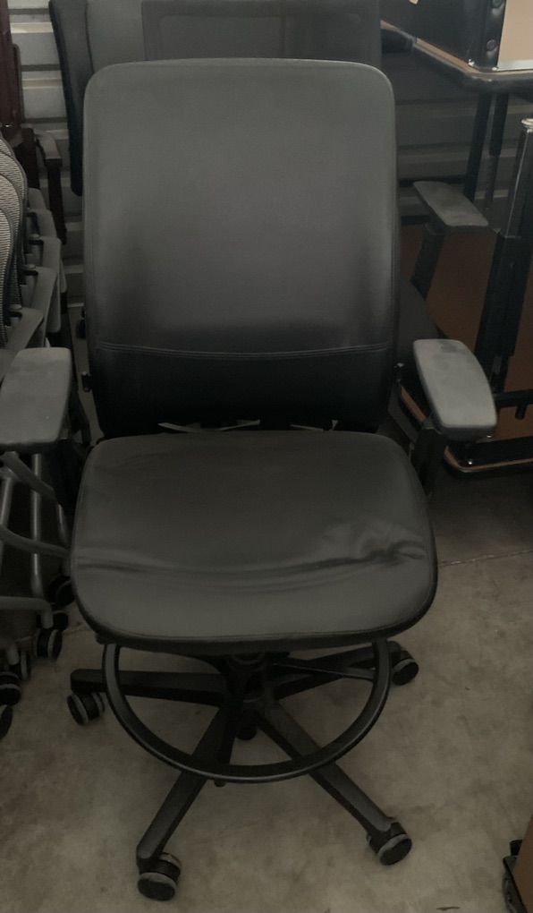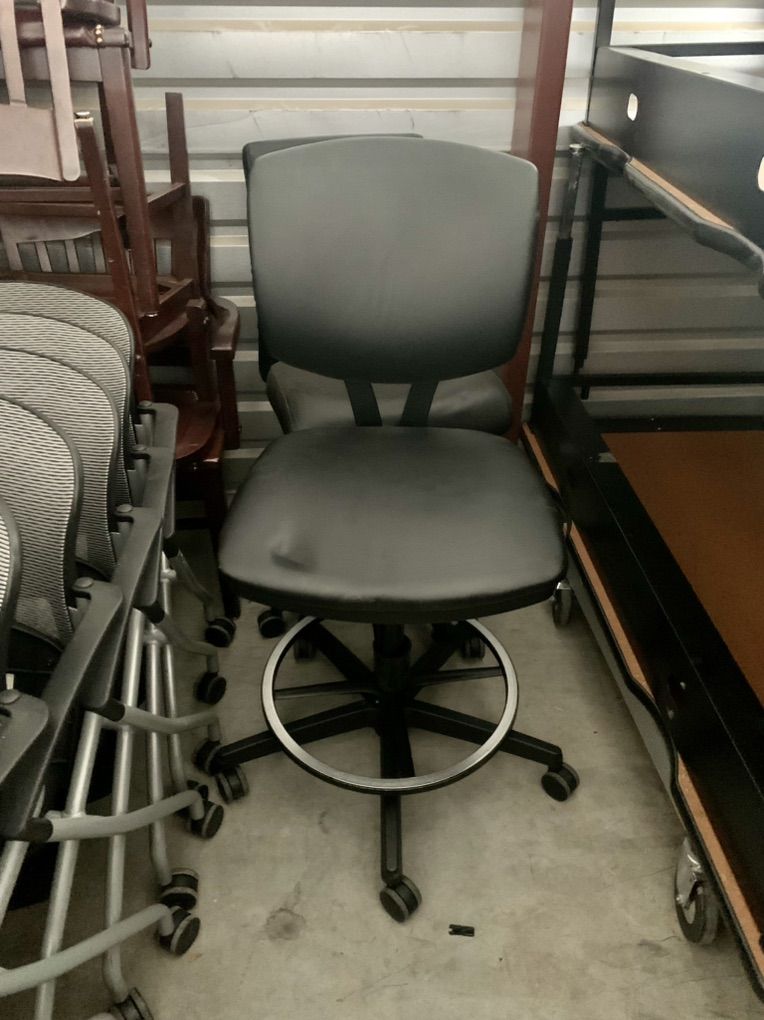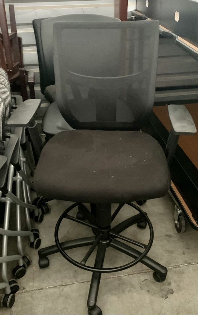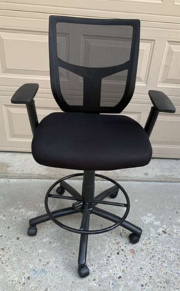 2 each DRAFTING HEIGHT TASK STOOLS WITH ADJUSTABLE ARMS AND FOOT RING. SEAT HEIGHT 24” TO 34”