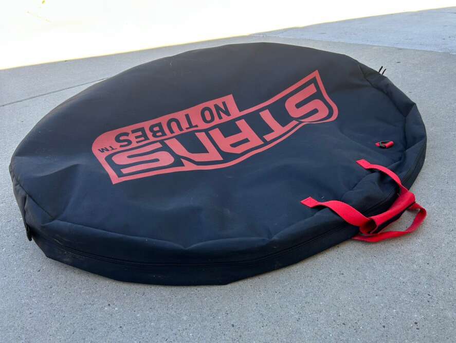 For sale is a Stans wheel carrying bag in excellent condition. Will fit a set of 29er wheels and has some hub protectors as well. Like new condition, only used a few times for spare wheels. 100 obo