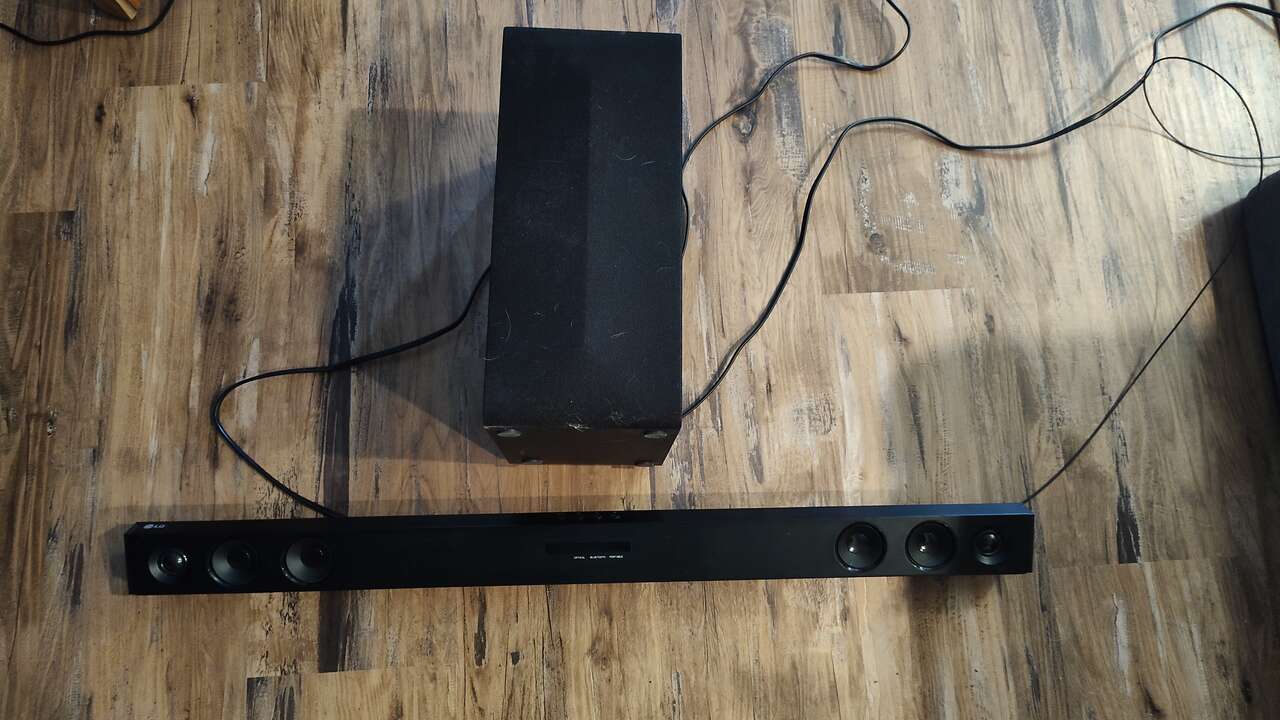 Excellent condition, works perfect! Only selling because our new TV has built in speakers. 2017 LG Sound Bar and Subwoofer. Model SPH4B-W. Retails for $180, asking $60. Cash only. I think it is essentially this: https://www.target.com/p/lg-2-1-channel-bluetooth-sound-bar-with-streaming-sqc2/-/A-90513446?sidd=2641S&ref=tgt_adv_xsp&AFID=google_pla_df&fndsrc=tmnv&DFA=71700000119653123&CPNG=PLA_DVM%2Ba064R000015Ph9CQAS-LG_GoogleSearch_Aug-Sep_2024-1347058&adgroup=PLA_LG&LID=700000001393753pgs&network=g&device=m&location=9029753&gad_source=1&gclid=CjwKCAjw6c63BhAiEiwAF0EH1KyrTo0IzdMEsKIyDHMPgKuyBUGzP4WAbps9hECq5T2GU9raWd_J0RoCeiYQAvD_BwE&gclsrc=aw.ds