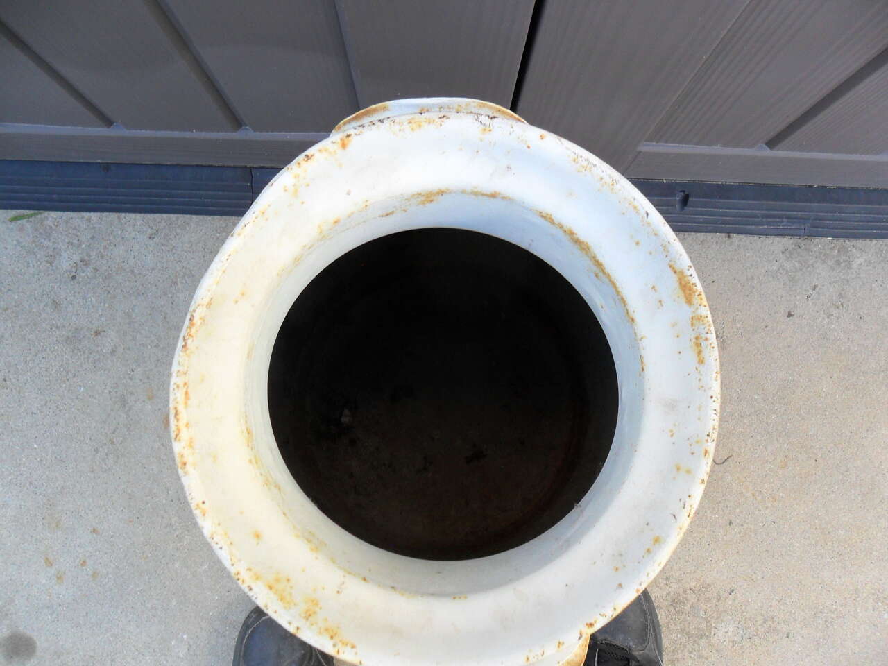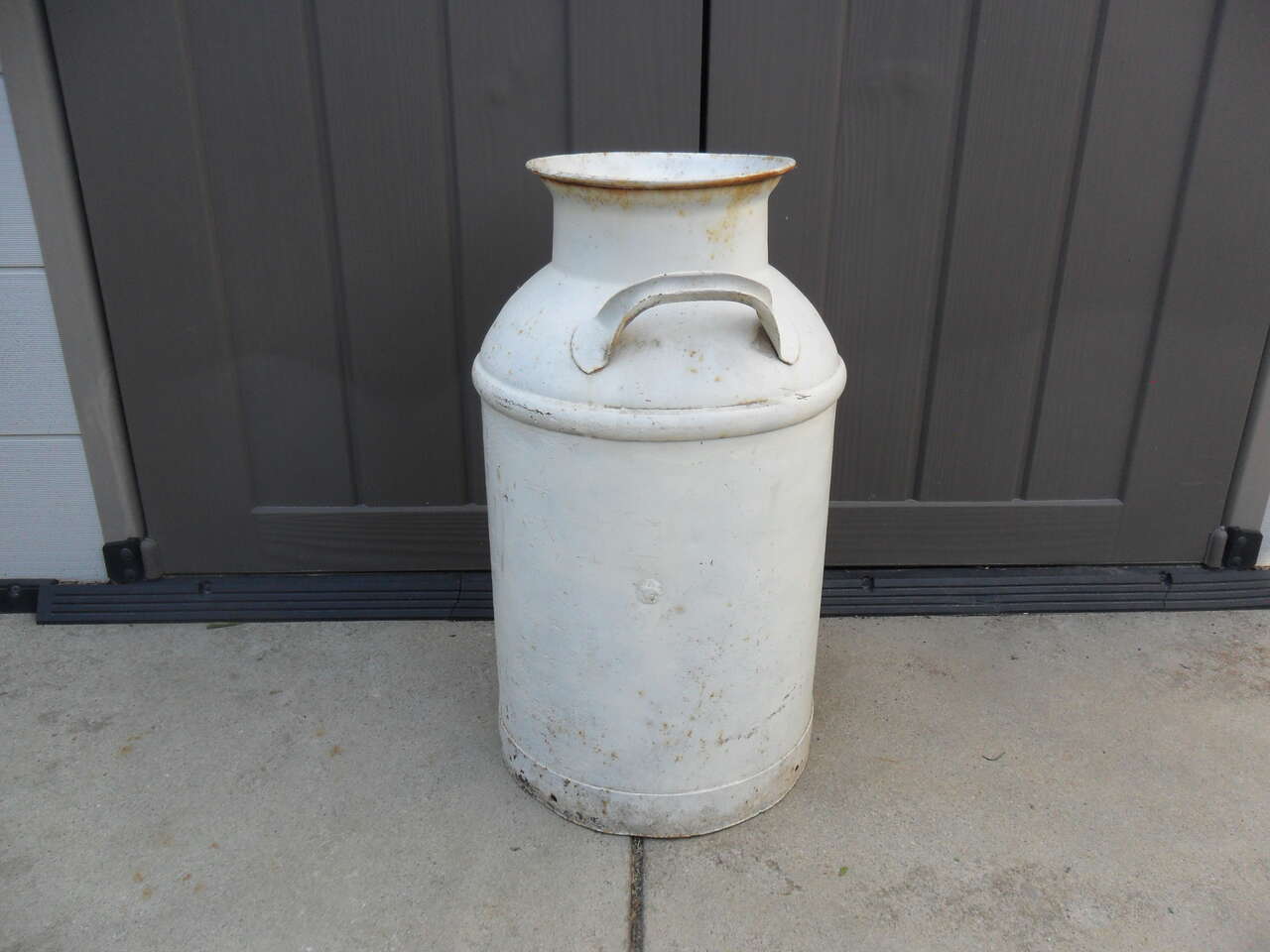 This old can is straight with a couple pinholes in the bottom. It has no lid and is 24" tall. Will make a great decoration piece. Thanks for looking.