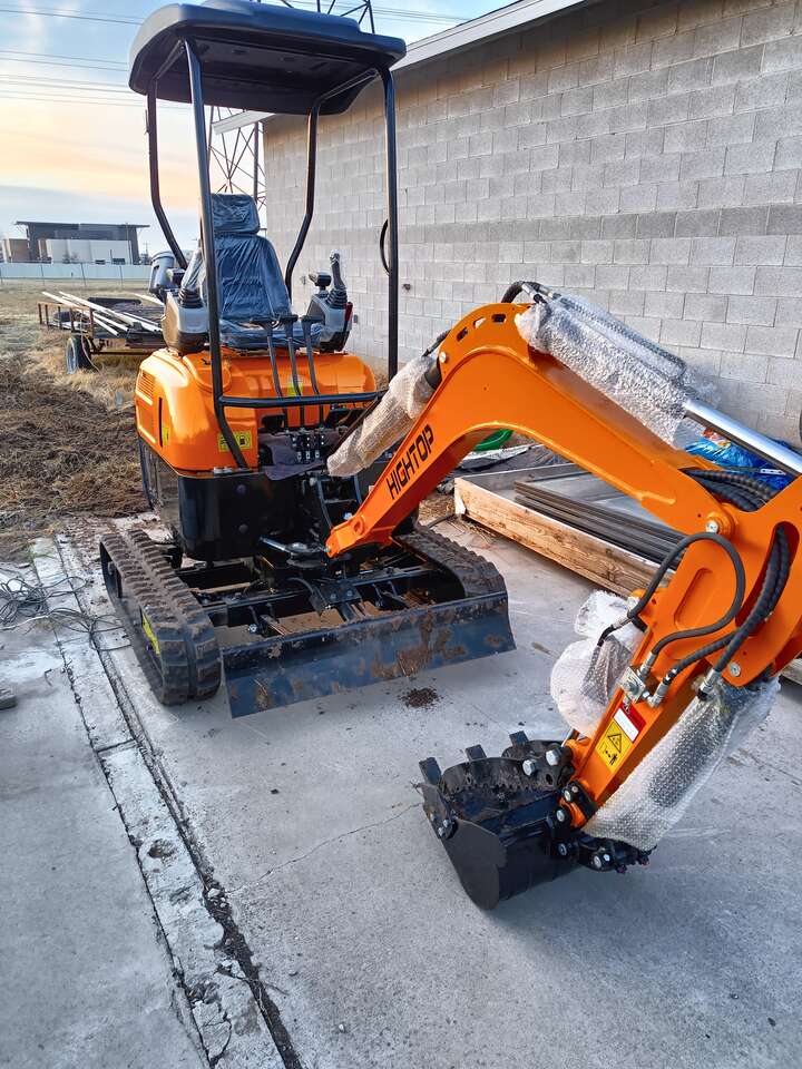 Brand new 2-ton mini excavator that has a Kubota 17 horsepower motor plus it has a Parker hydraulic motor, US made, and Eaton walking motors which I think are also US made. It has a hydraulic thumb, expandable tracks, swing boom for increased mobility. It also comes with multiple attachments such as a 36-in non-tooth bucket, 8 in narrow bucket and the 12-in bucket that's on it plus it has a 12 in post hole digging attachment and although not pictured it also has a cement breaker attachment. It comes with some spare teeth for the buckets and extra bolts for attaching the attachments. It of course has the push blade on the front Plus each side can get another six or eight inches wider with the bolt on attachments. The digging depth is approximately 7 ft deep. Asking price is $13,900 with all of the attachments. Cash or bank check only. Possible delivery within 2 hours of Salt Lake City at a cost. Call or text Mike at (801) 778-0555
