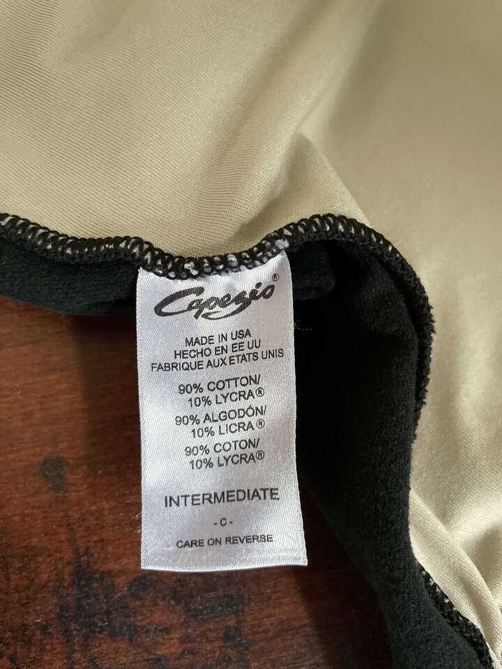 ZelleThis leotard is in good used condition. It would fit a 4-6 year old. (See manufacturer size chart in photos). I'm happy to ship if you pay for shipping in advance! 90% Cotton, 10% Lycra Spandex Full front lining Scoop front and back Ballet leg line