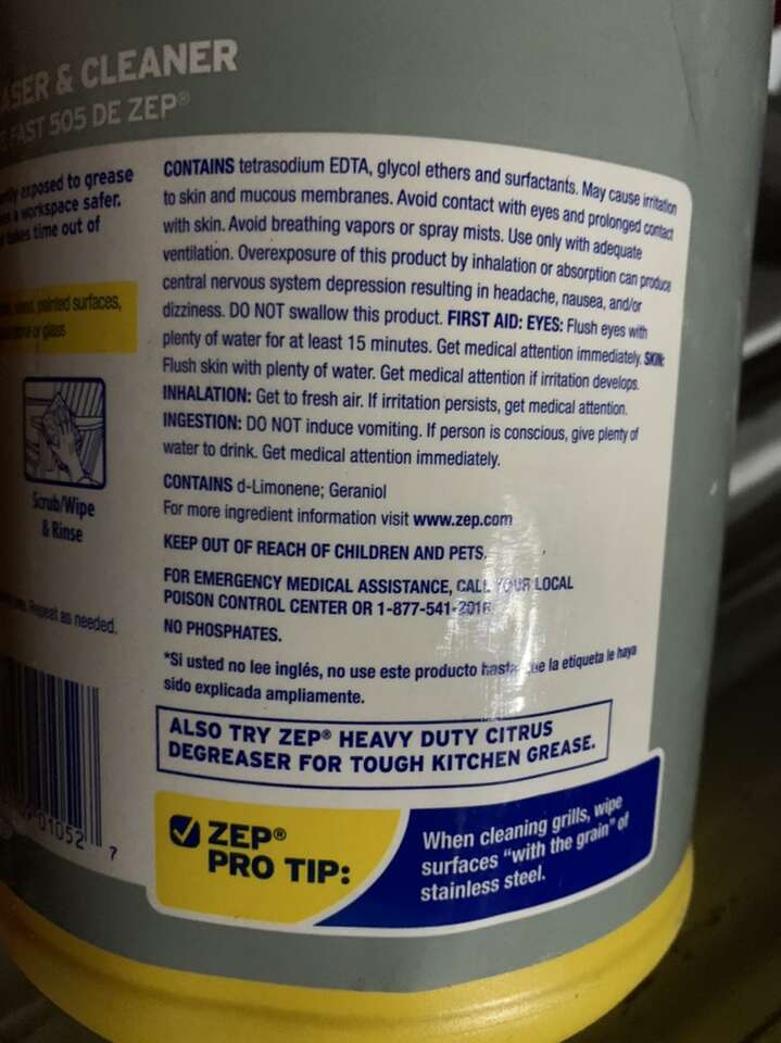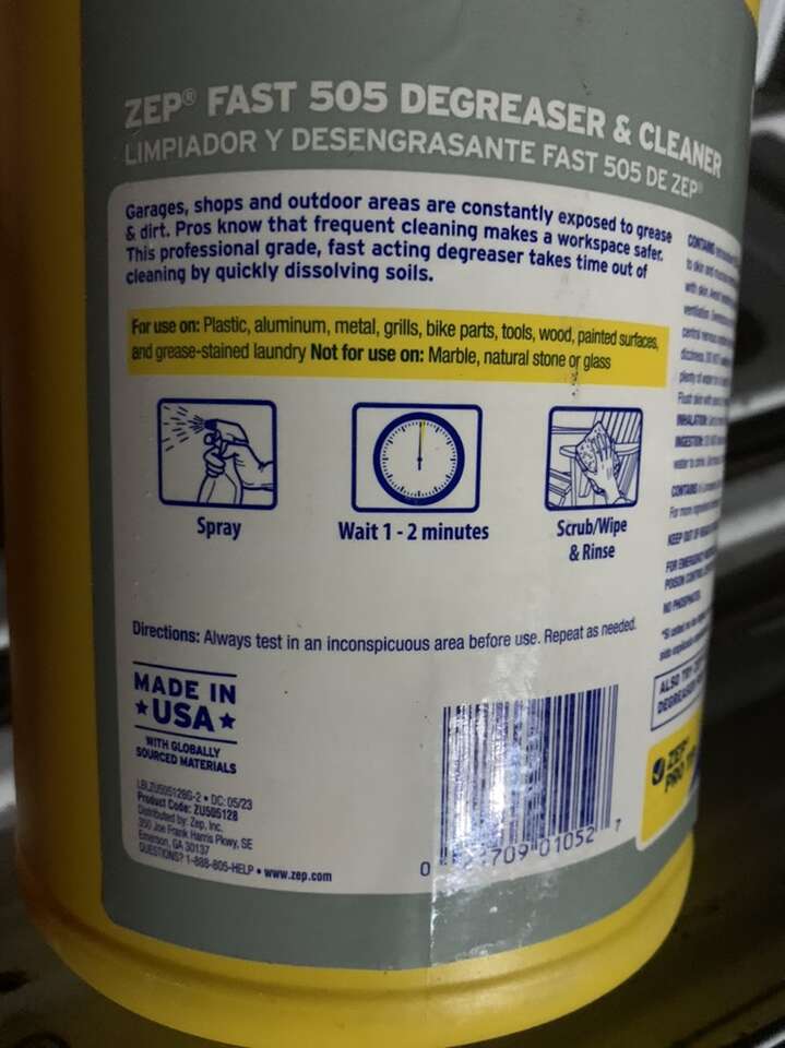 I have 12 gallons of zip fast 505 degreaser and cleaner for sale. Perfect for removing oils and grease and dirt. You can use it on tools, decks, grills, and plastic. great for grease stained laundry. Asking nine dollars each or two for $15.