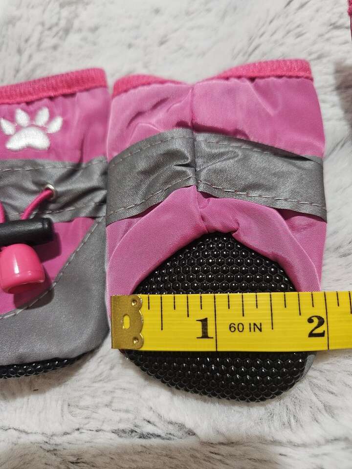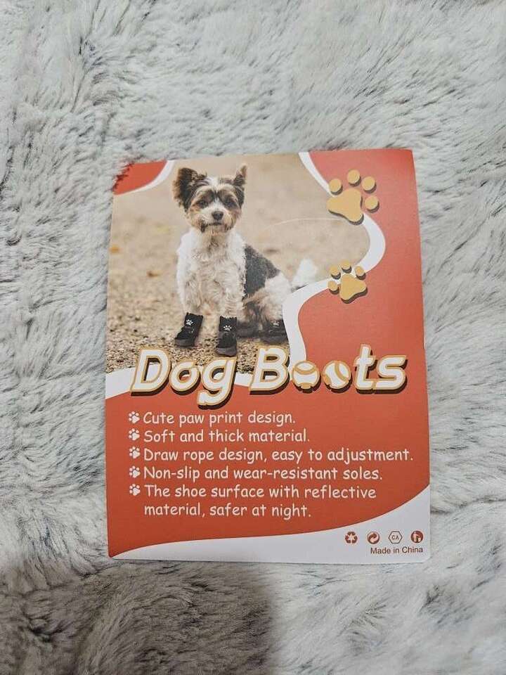 This dog boots are new never used. They have the elastic to make them tighter if needed around the legs. Please double check the measurements in the pictures to make sure this will fit your little one. All my items come from a smoke free home. Any questions please feel free to contact me.