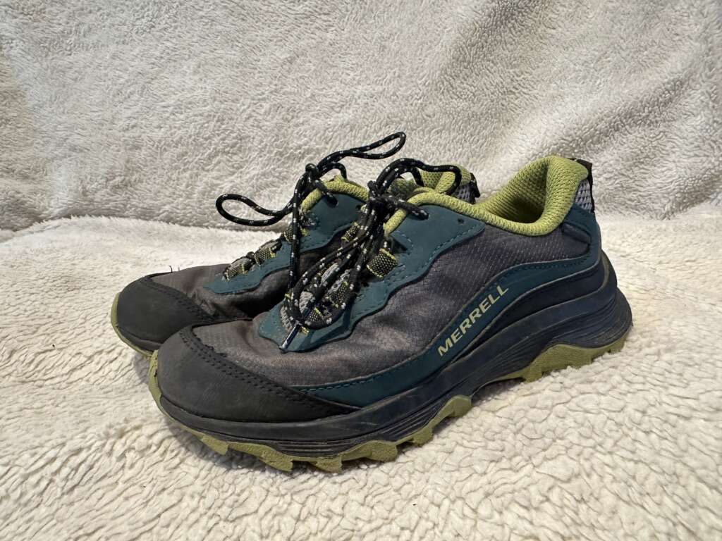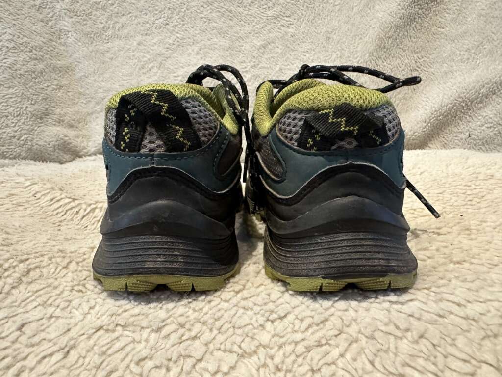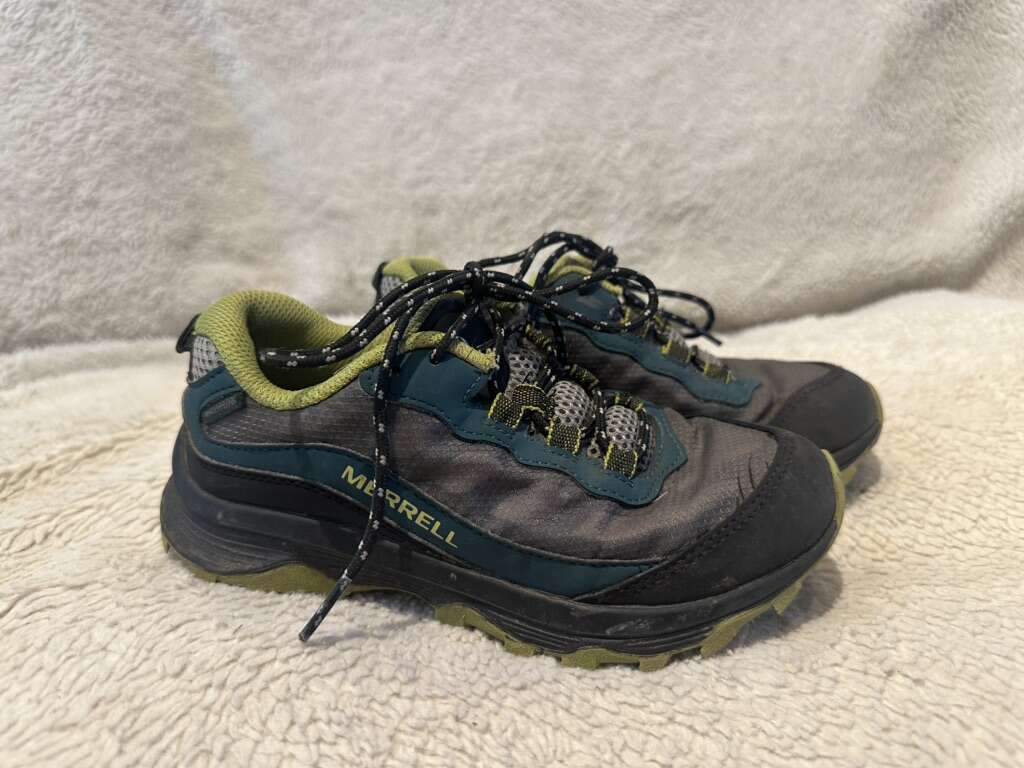 Merrell youth size 2 gray with lime green and teal trim, mesh and textile waterproof hiking shoes. These are in good condition, see photos for details. I take cash or Venmo, but cash is preferred. Text is best. 8012014446. Check out my other ads for additional sizes and styles.