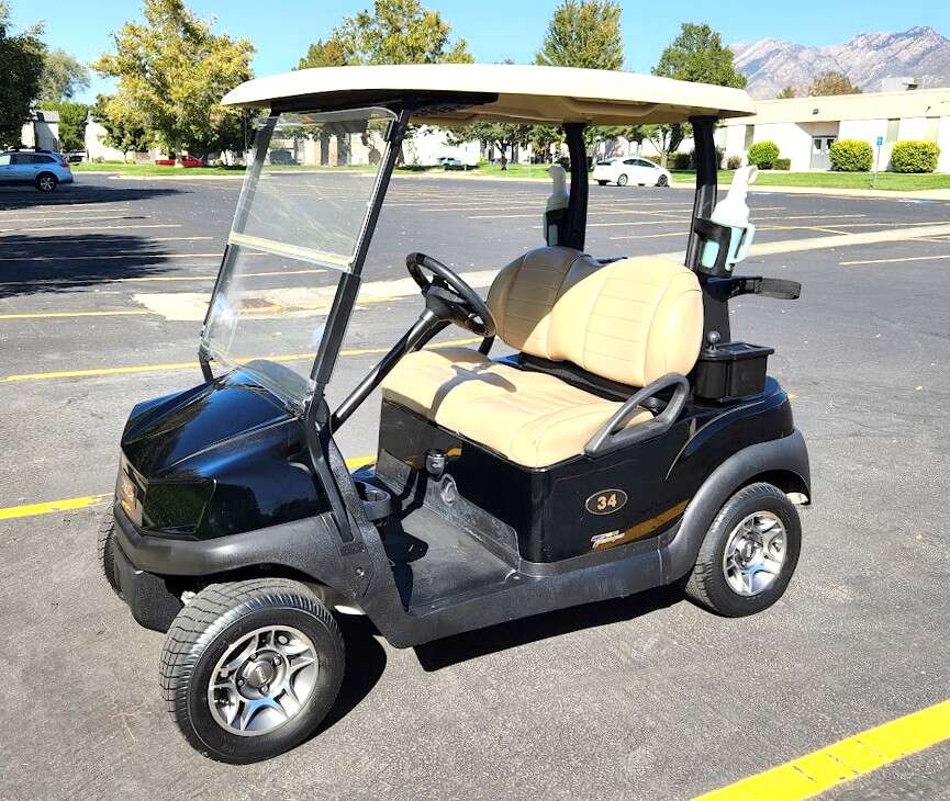 In our Sandy, UT Dealership we are featuring a 2020 tuxedo black Club Car Tempo taken in on trade from a very high-end private country club. Factory Installed Lithium-ion Battery Metallic Tuxedo Black Bolded Body Custom 10” Mercury wheels Black Canopy Top Premium Beige Seats Dual USB Ports Premium Comfort Grip Steering Wheel & Scorecard Holder Battery Level Indicator Dual Sand & Seed Bottles Ice Chest Cooler Independent Leaf Spring Front Suspension Dual Hydraulic Shocks Rack & Pinion Steering Decent Tires Rust-resistant, Aircraft-grade Aluminum Frame Ball Washer Premium Fold-down Windshield Battery Charger Included (Always) Sale Priced @ Only $6,495 +tax Call us at our Sandy, UT, dealership for more information 801-255-8828 LEGENDARY. AWARD WINNING: Club Car is proud to continue building the world’s preferred golf cars, and also proud to once again have earned Golf Digest’s Best Golf Car award. The Club Car TEMPO is and has been the leader in the golf car industry. With unique features like the strong rust-free aircraft grade aluminum frame, molded in color bodies for better finish and long-lasting durability, and best in class turning radius. The Club Car TEMPO with its great styling, innovations and durability will be a great addition to your garage or golf game. TRADE-INS: Sell your current vehicle and buy a new one at the same place! You can even apply your written offer towards the purchase of a new golf car or utility cart, or give us a call at 801-255-8828 if you want more information about trading in your vehicle. Free Test drive. Call (801) 255-8828, 9115 S.700 E. Sandy, Utah 84070 AN2042-119717