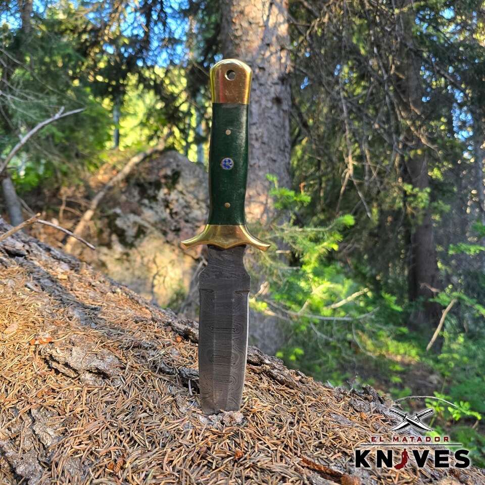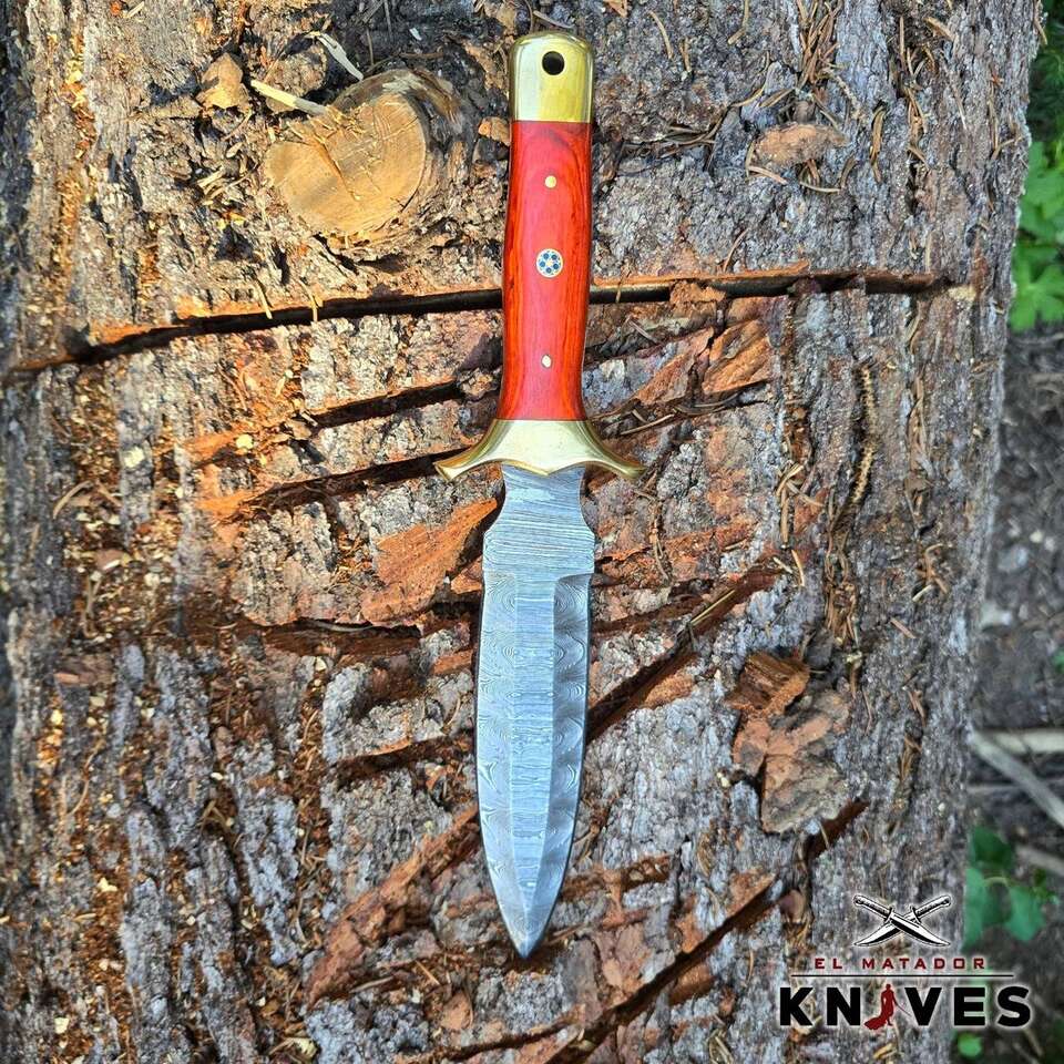 Fixed Blade Handmade Damascus Steel Dagger Knife with rose wood Handle & Real leather Knife Sheath. Special Feature: Full Tang, Compact Age Range: Adult Handle Material: Rose wood Color: Silver Blade Material: Twist Damascus Overall Length: 11 Inches Handle Length: 4.5 Inches Blade Length: 6.5 Inches Hand Orientation: Dual