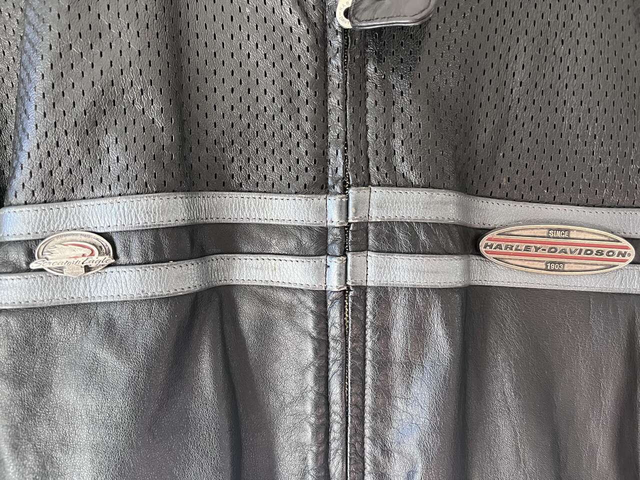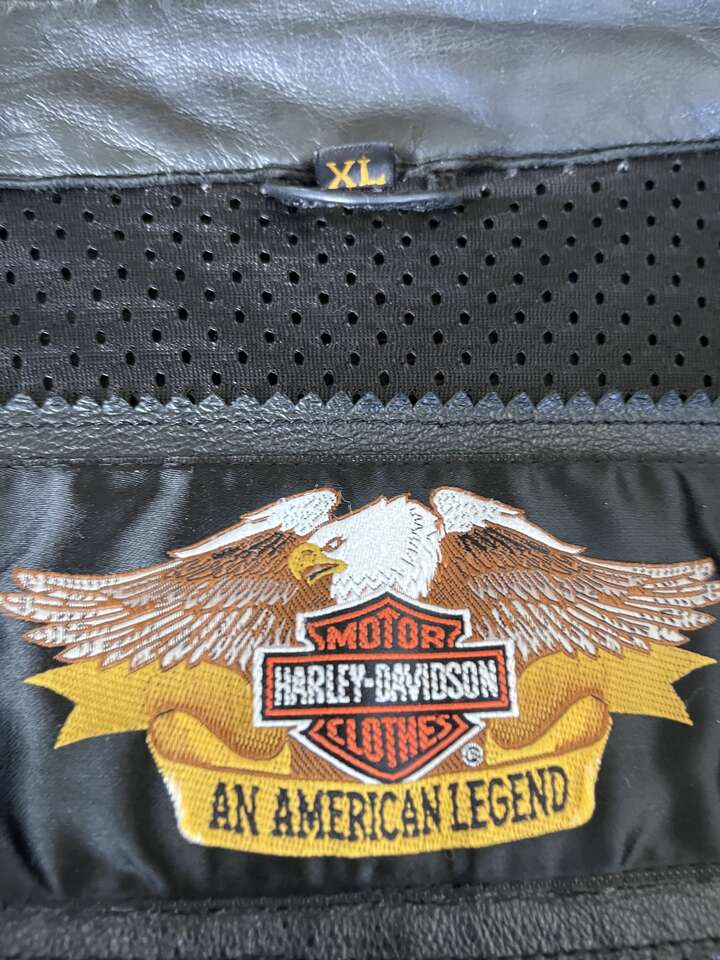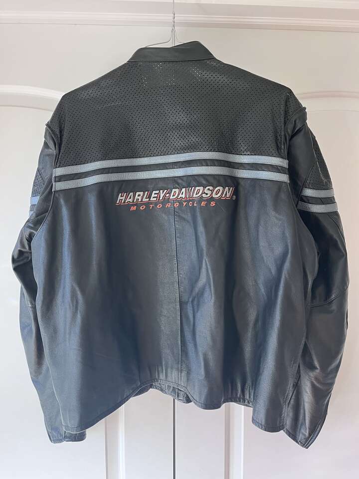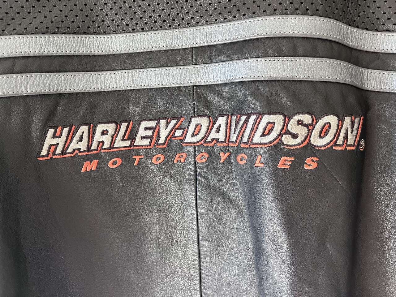 Harley Davidson Classic Cruiser Leather Jacket Size XL with multiple pockets and black and grey coloring.