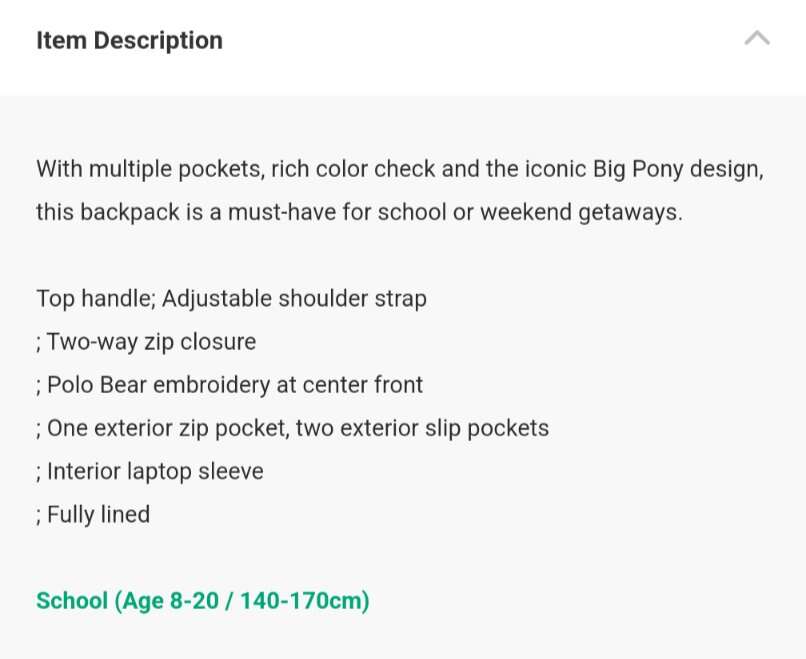 I couldn't find this item on the US POLO RALPH LAUREN site but I found it on a Japanese online store site as you can see in the picture and the size chart is in centimeters.