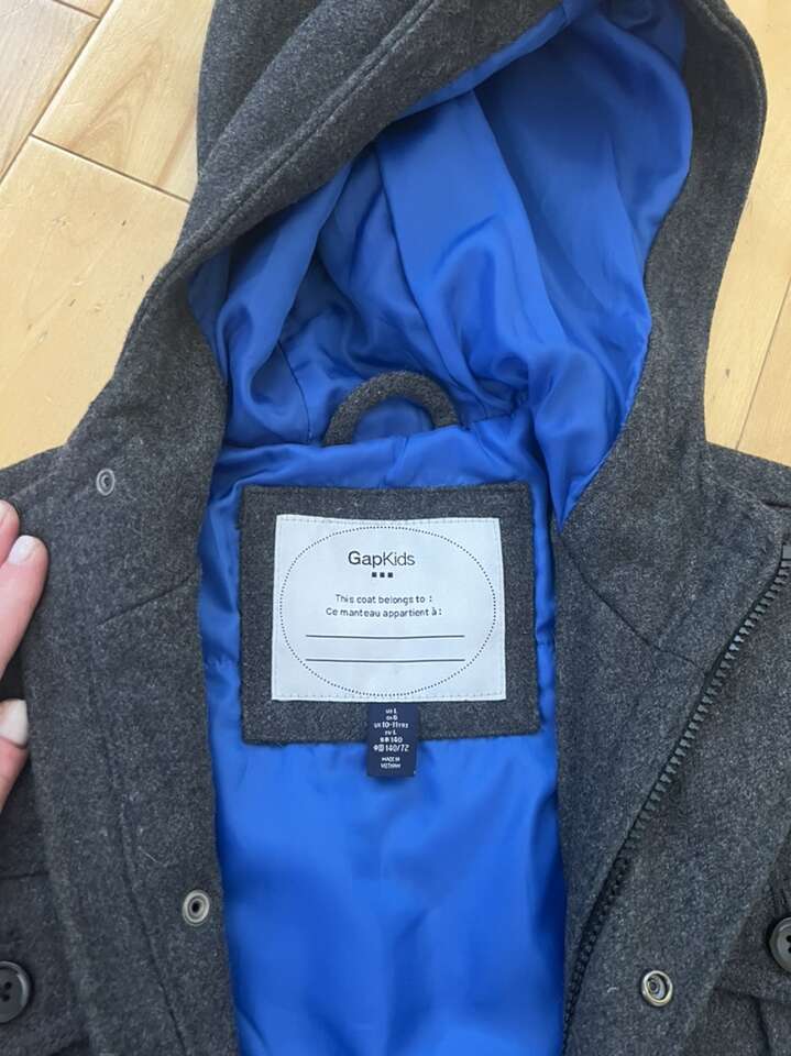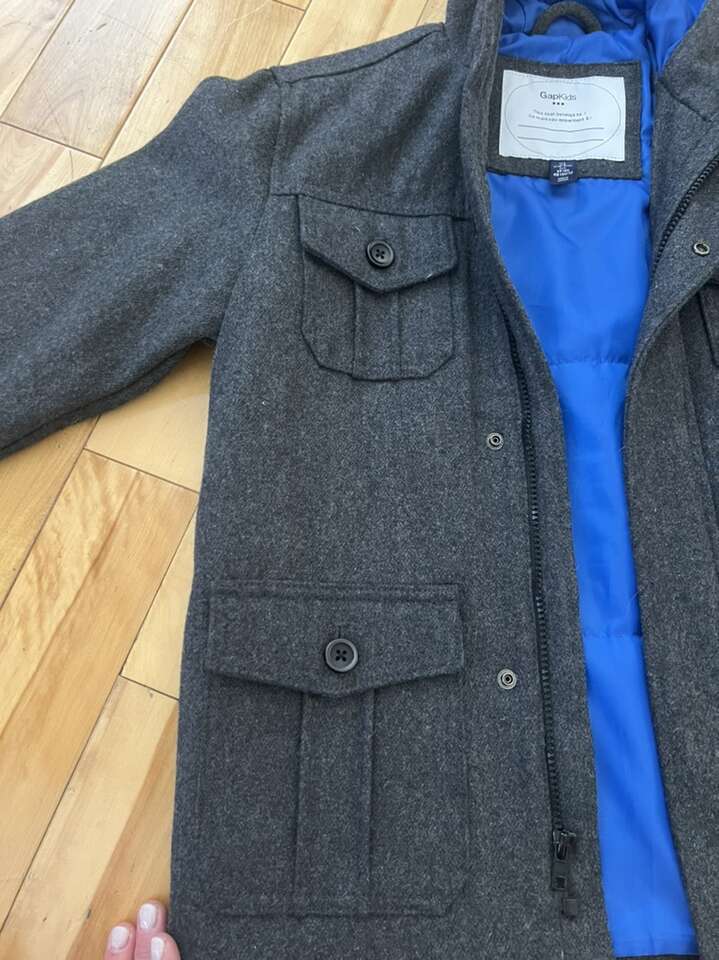 This peacoat is brand new, high quality and very handsome. We had it in our coat closet and my son outgrew it before he ever used it! It is hooded, charcoal gray, with bright blue liner, size 10/11. Right now on the Gap Kids website, a wool peacoat is listed at $118, on sale for $60 right now. Only asking $20 for this one! Message Catherine if you’re interested.