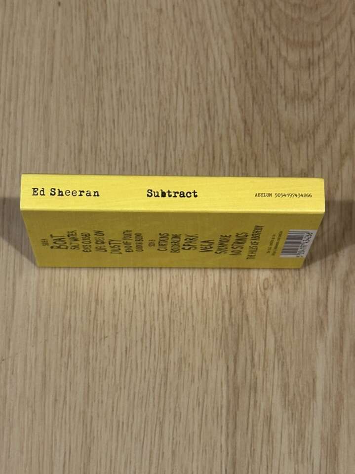 Ed Sheeran’s album Subtract on Splatter Yellow and White Cassette Tape. It’s beautiful and goes so perfectly with the cover art. Perfect for any collector or Ed Sheeran fan! It shipped not sealed in plastic so I was able to take pictures of what the actual tape looks like and everything. But it is brand new and has never been played.