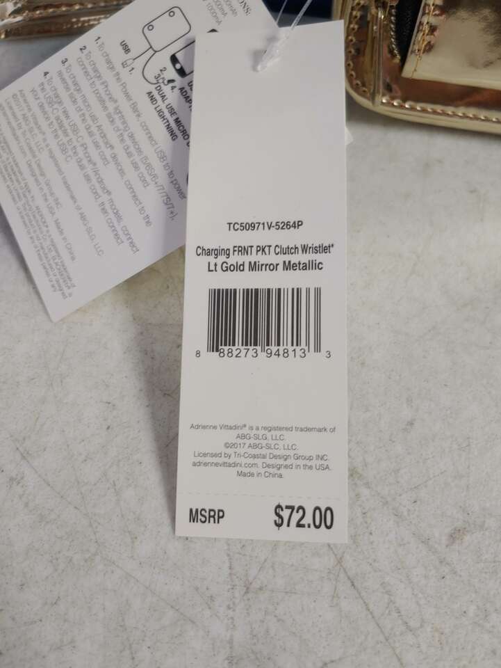 Brand New - Adrienne Vittadini Charging Wallet Wristlet Mirror Gold W/RFID Protection & Front Pocket Android/IPhone