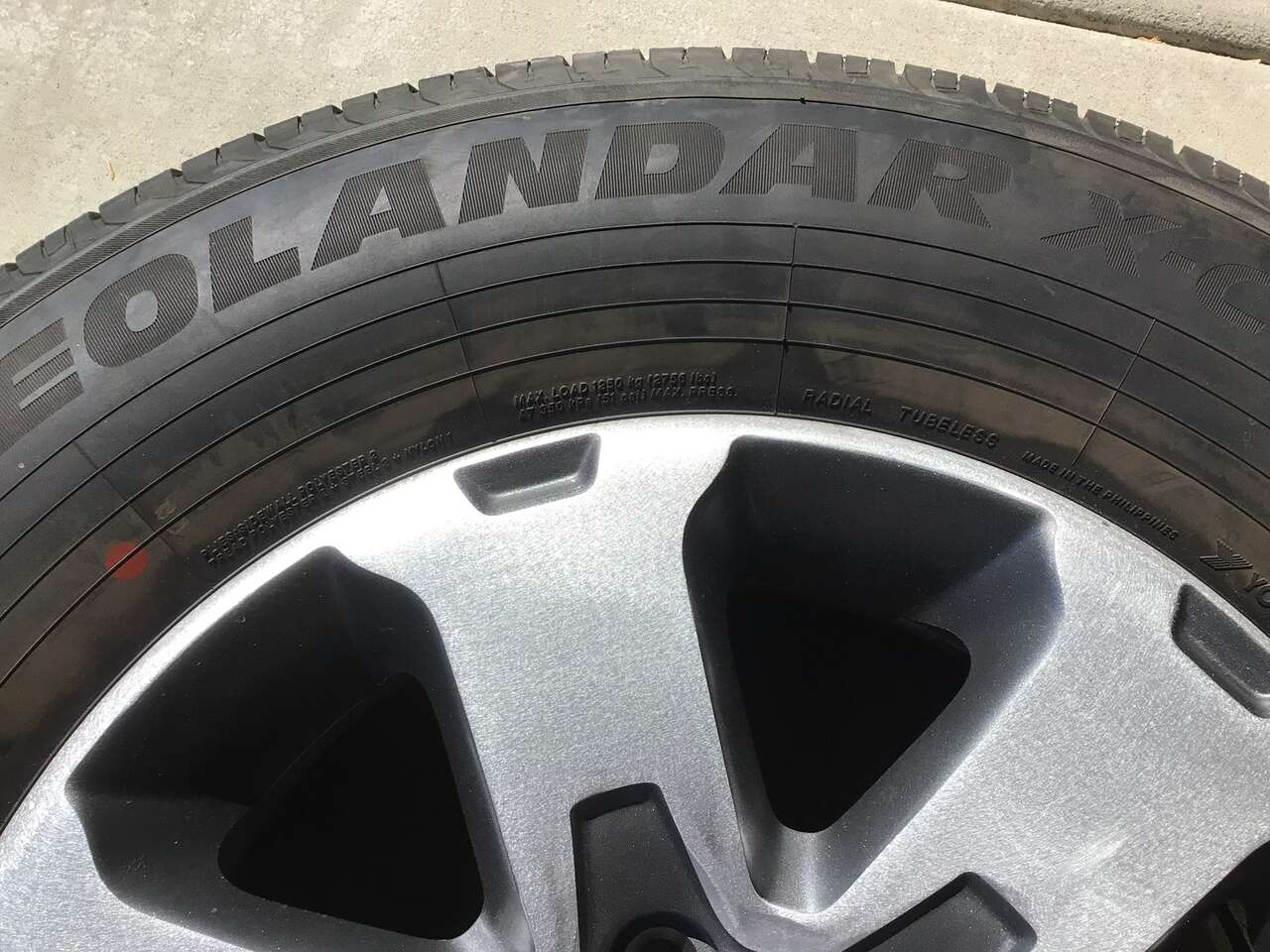 Set of 4 265/70R18 Yokohama Geolandar X-CV tires on OEM Ford wheels. The tires are take-offs with about 20 miles on them. The wheels aren't new but in good condition. Will fit F-150 and 1/2 ton Excursion. No email, no codes, NO SCAMMERS.