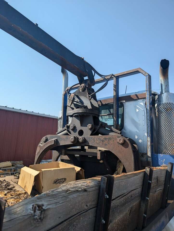 Just had a reman injection pump installed. this has a big cam Cummins engine that starts and runs very well. This is rough around the edges but a very solid machine. PTO and 360 degree good grapple assembly all work as they should. 4 new tires and road worthy. I need to look at the title but I think this is a 1992.