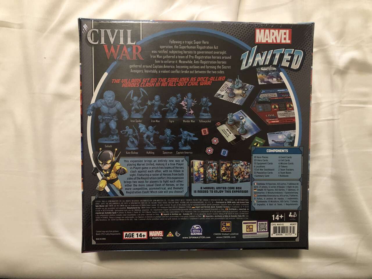 VenmoStill in shrink. Comes with Kickstarter exclusive characters Iron Spider and Hulkling, and their equipment cards. Following a tragic Super Hero operation that resulted in many casualties, the Superhuman Registration Act was ratified, forcing heroes to reveal their secret identities and subject themselves to government oversight. Iron Man agreed with the policy and gathered a team of Pro-Registration heroes around him to enforce it. Captain America, on the other hand, felt heroes needed to be above direct government control. Other Anti-Registration heroes joined him, becoming outlaws and forming the Secret Avengers. Inevitably a violent conflict broke out between the two sides and now the villains sit by the sidelines as once-allied heroes clash against each other in an all-out Civil War! This expansion brings an entirely new way of playing Marvel United! The Civil War play modes make it a true Player vs Player game, in which two teams of Heroes clash against each other, with no Villain in sight. Featuring a roster of Heroes from both sides of the Registration conflict, this expansion brings two ways for players to fight each other: either the more casual Clash of Heroes, or the more competitive, asymmetrical, and thematic Registration Clash! Which team will you choose?