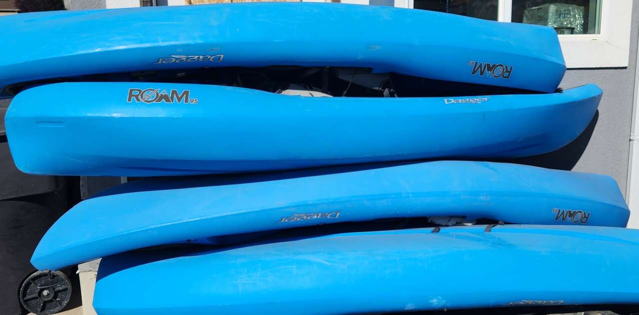 TLDR: these are great boats, and I am sad I need to sell them! It is with mixed emotion I list these kayaks for sale. They were purchased about 5 years ago when I was first getting into whitewater kayaking and wanted my family to participate in a sport I have grown to love immensely. Alas they don't enjoy it as much as me and aside from me dragging a partially willing friend along to the river with me. they just sit unused. I originally paid about 1000 a piece after tax for these amazing stable boats (for anyone under 200 lbs). They are nimble and stable in the river (rated to class 3) and have a drop down skeg to track straight for lake or other flatwater paneling to aid in tracking straight. These are perfect to take people new to the sport on easy sections of river(hen-tag) to allow them to have the experience of whitewater kayaking without the fear of being strapped in. They have run the weber, the Payette main, the green river A section at 9K and a few other mellow floats. I am selling so they can get more use then I am able to provide now. These would make great rental kayaks for anyone with a rental business. The outfitting is in rough shape on some and could use some loving but the plastic is solid, just your typical road rash and a few repaired trailer incidents. I do have thigh straps for most of them still I believe. Buy 1 or let's make a deal on multiple.