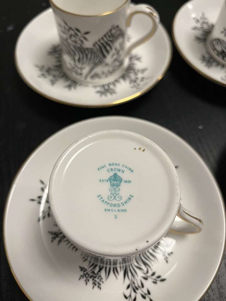 Fine Bone China teacups & saucers depicting Lion, Elephant, Tiger, Zebra, Cheetah & Giraffe