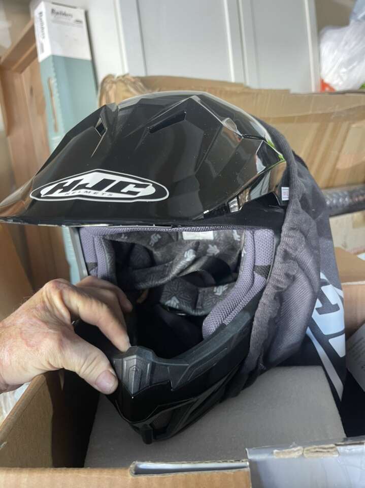 New in the box hjc brand kids moto helmet. It is black. First $40 takes