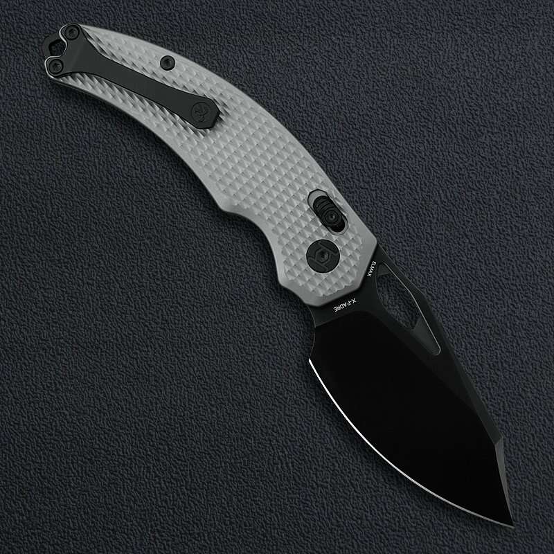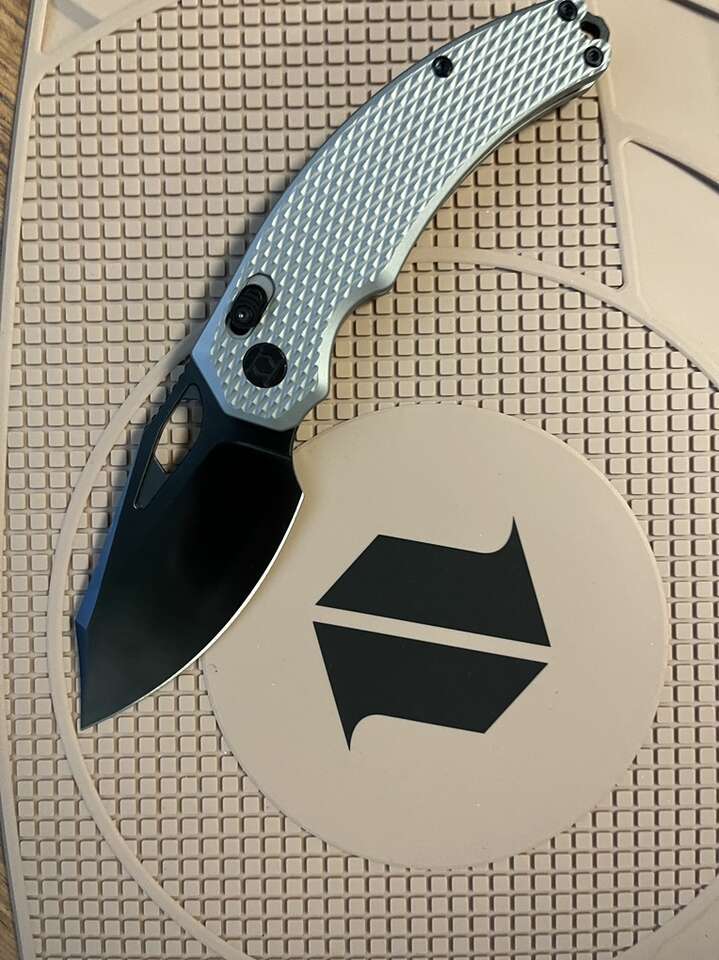 Brand new - purchased directly from Kunwu. Amazing blade shape, polished DLC blade, handle shape and action with the cross bar lock. Full diamond texture titanium frame and Elmax DLC blade. Comes with box and everything it comes with from the factory. Kunwu's DLC is amazing.