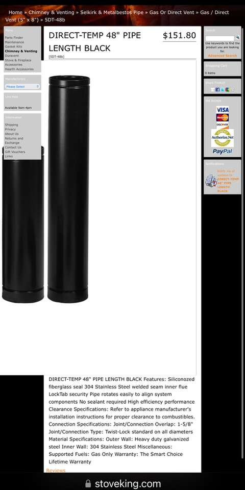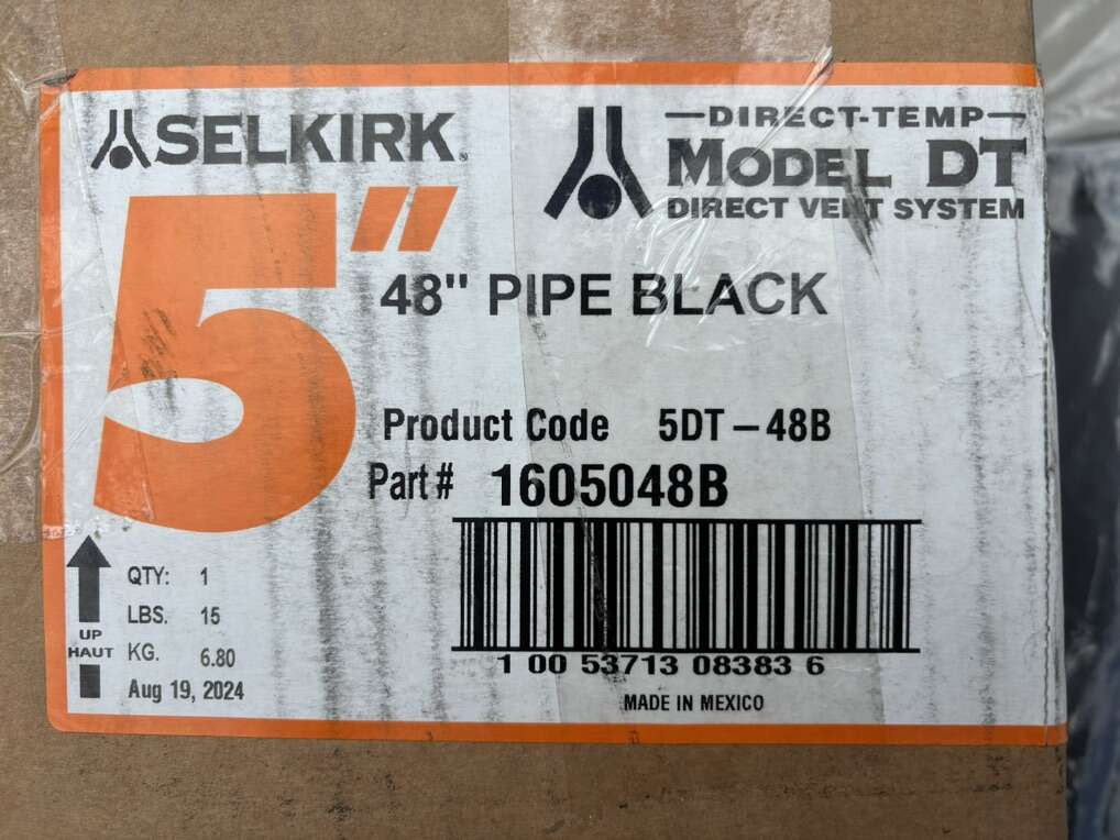 Description- 5 inch diameter by 48 inch long direct temp, black stainless steel stove, pipe See photos for more product information and specifications.