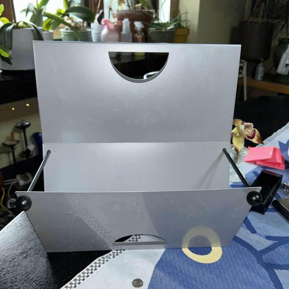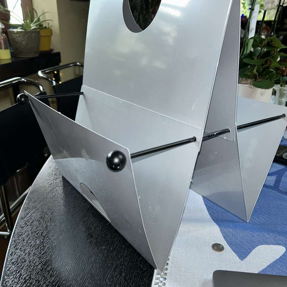 1980's Memphis Milano Style Chrome Silver Metal Magazine Rack Italian Postmodern