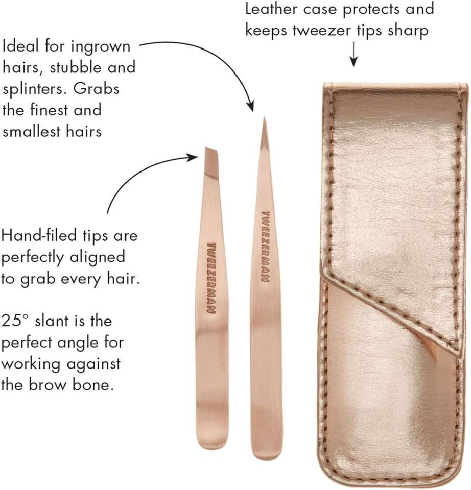 We have six of these Tweezerman Rose Gold Petite Point and Slant Tweezer Set with Travel Cases #93754 available. These these Tweezerman sets are New and come in original cases.