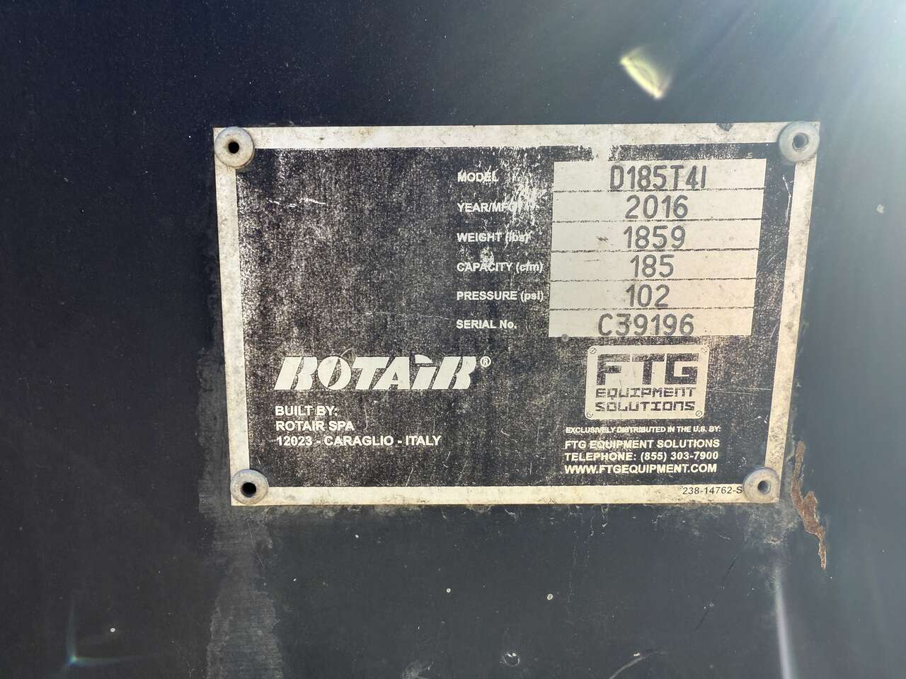 2016 Rotair D185T4I Air Compressor Stk# 11280 - 1926 hours, 185 CFM, towable - Call or Text (208) 419-0383 with questions or visit www.davidsteedco.com for more information and to see our inventory of used heavy construction equipment.