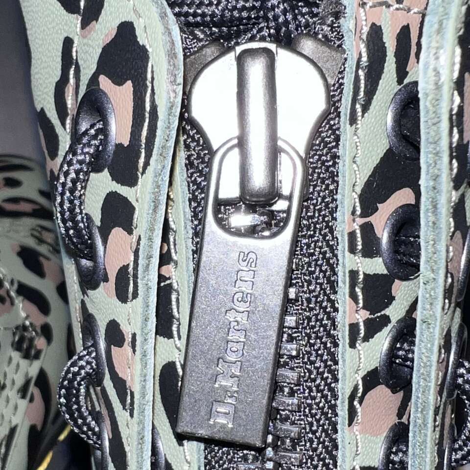 An unmissable print and unapologetic silhouette. The towering Sinclair boot returns in bold twisted leopard. A maxed-out evolution of the Original DMs boot fitted with a removable jungle zip piece that offers two ways to wear. You can wear with the zipper insert and lace them up the sides, or you can remove the insert and lace them like a combat boot. Marked with an AirWair heel loop and iconic yellow stitching punched through the 2 Quad sole. Built from tough Backhand leather patterned with utilitarian-style camouflage with hidden skull details.