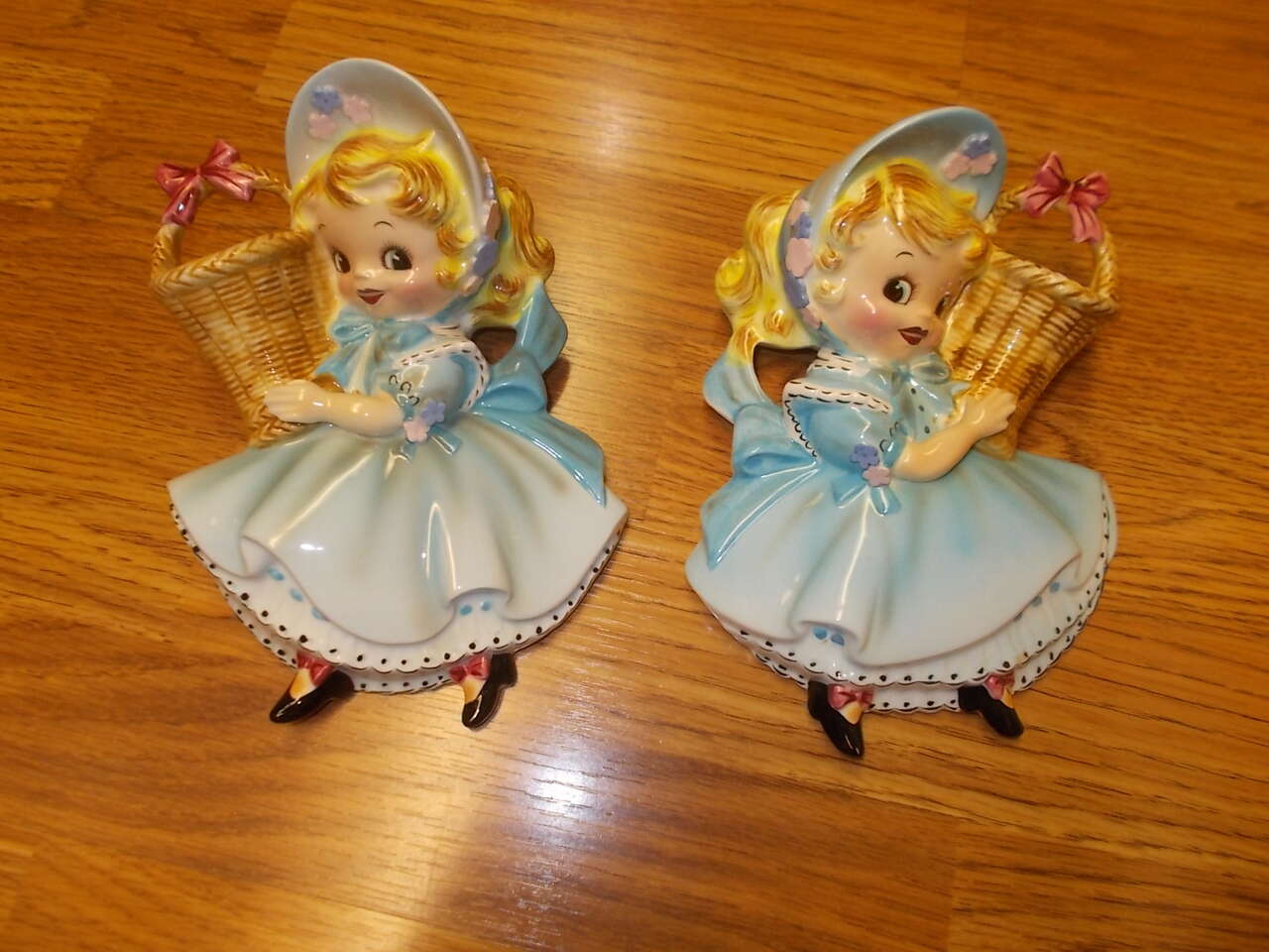 This rare and adorable set of 1956 Lefton Miss Dainty Wall Pockets are in Mint condition and turly just so cute. Please call 801-823-7198 and ask for Laura. Thanks