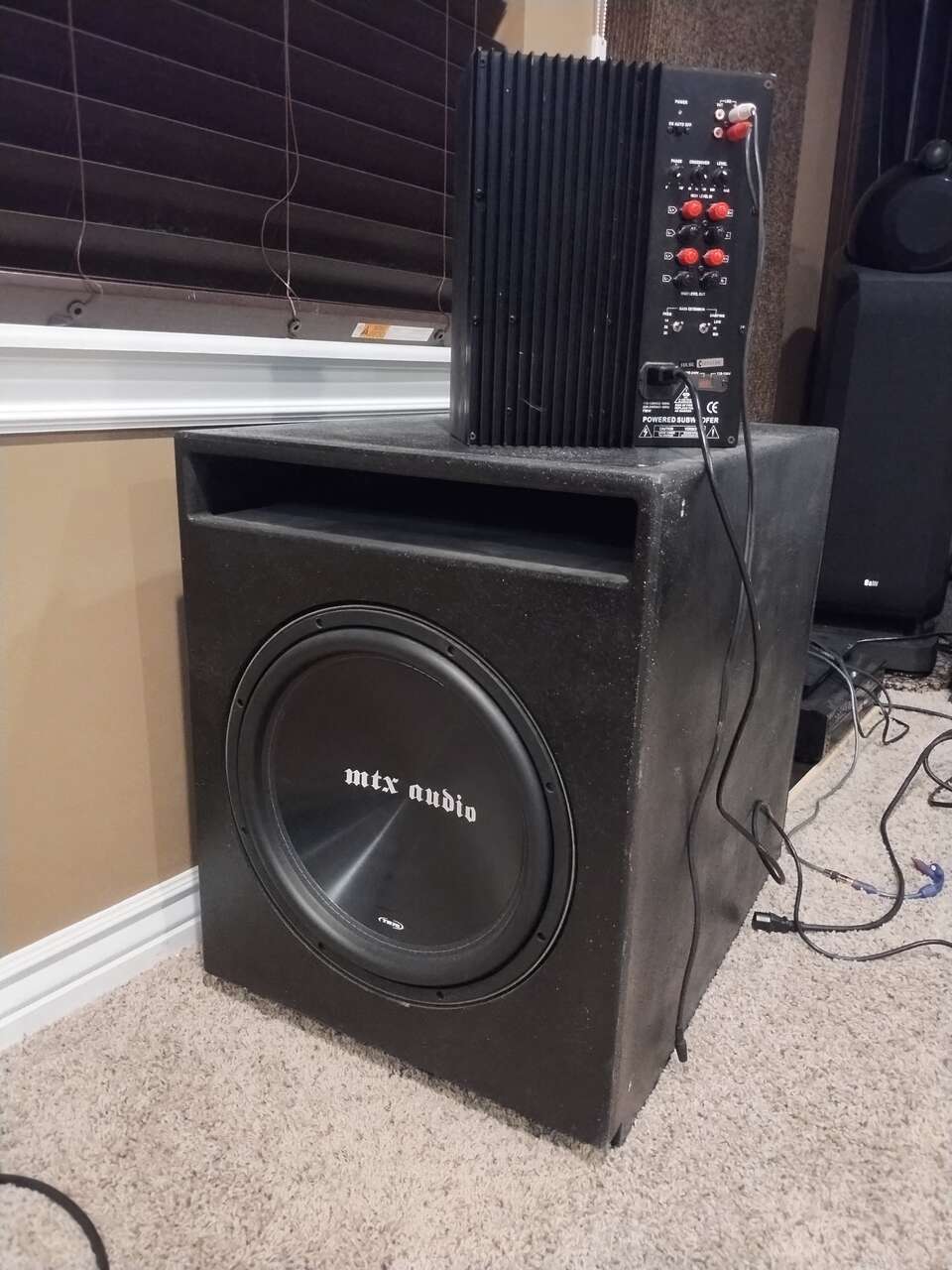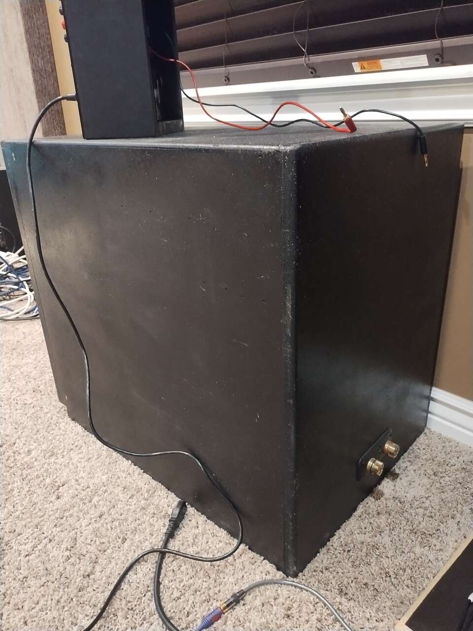 VenmoDIY 15" subwoofer and 750W subwoofer amplifier for sale. They are very good condition. 750W amplifier very strong. Subwoofer size: H: 19". W: 25". D: 28". Big body. Total : Before $400. now $300.