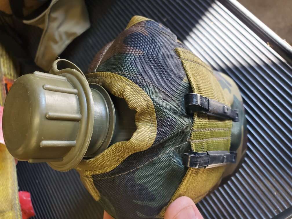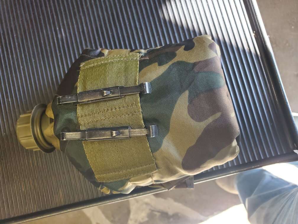 plastic canteen with camo cover. no belt. 5.00 CASH ONLY