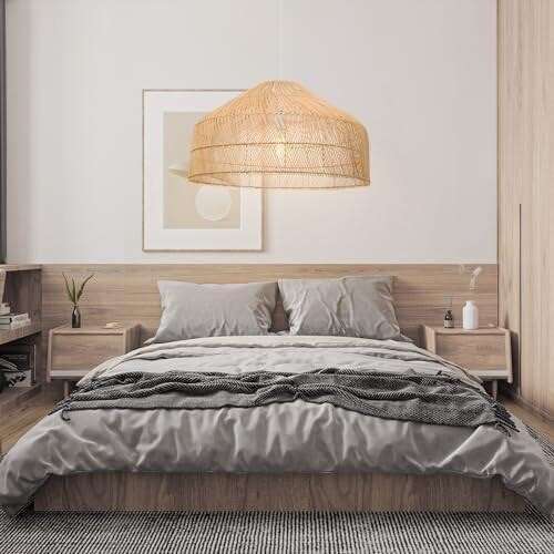 WalmHomie Rattan Pendant Light Boho Coastal Wicker Large Hanging Light Fixture for Living Room Bedroom Restaurant Coffee Shop, 23.62''W*12.99''H